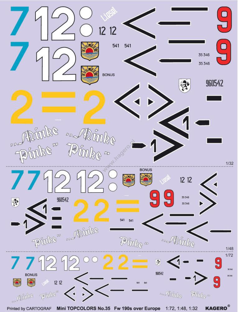 Decal sheet with 1:72, 1:48 with individual markings for 8 interesting "Butcher Birds". Each painting scheme is depicted on beautifully drawn 4-view colour profiles and described in the 20-page guidebook with English and Polish text. The authors chose the following aircraft: