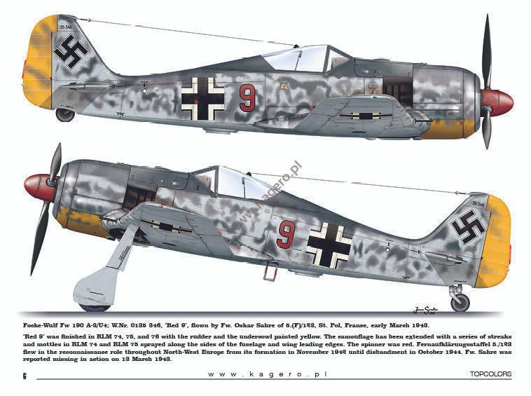 - Focke-Wulf Fw 190 A-3/U4; W.Nr. 0135 346, 'Red 9', flown by Fw. Oskar Sahre of 5.(F)/123, St. Pol, France, early March 1943,