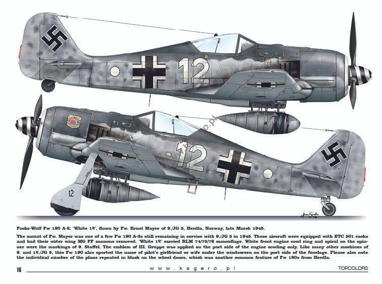 - Focke-Wulf Fw 190 A-3; 'White 12', flown by Fw. Ernst Mayer of 9./JG 5, Herdla, Norway, late March 1945,