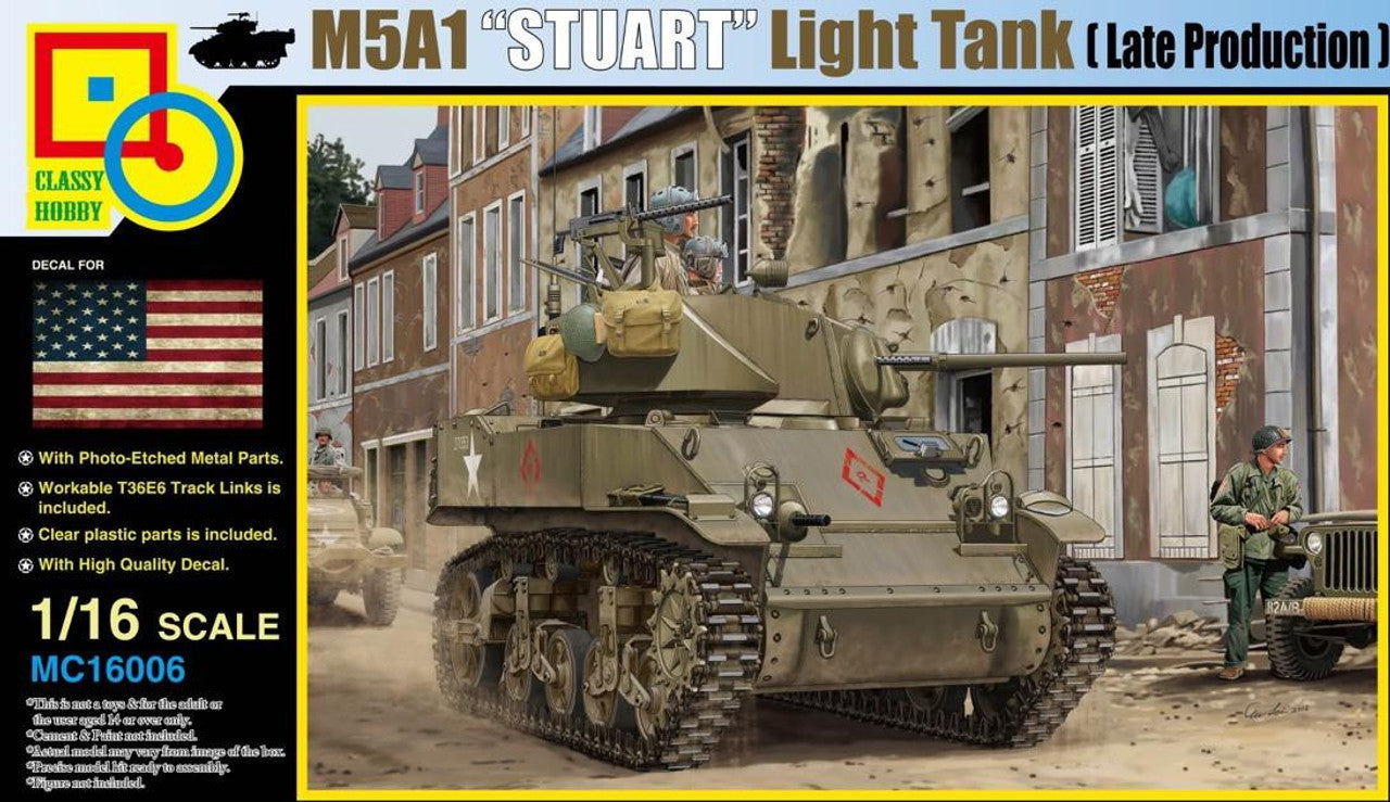 This model kit was on display at Beaver Corporation's booth at the All Japan Model and Hobby Show 2019! Classy Hobby's kit of the M5A1 Stuart tank, late production version, is an entirely new mold, and features movable metal-link tracks. The tank is equipped with a hedgerow cutter, and it also comes with clear parts and photo-etched parts, as well as decals for U.S. and British markings. Order this magnificent tank for your collection today!.