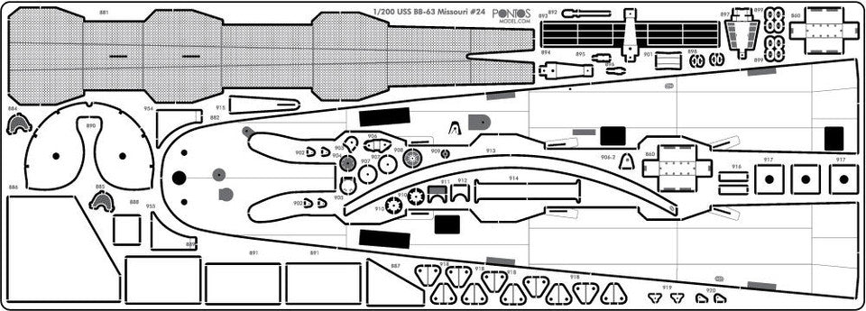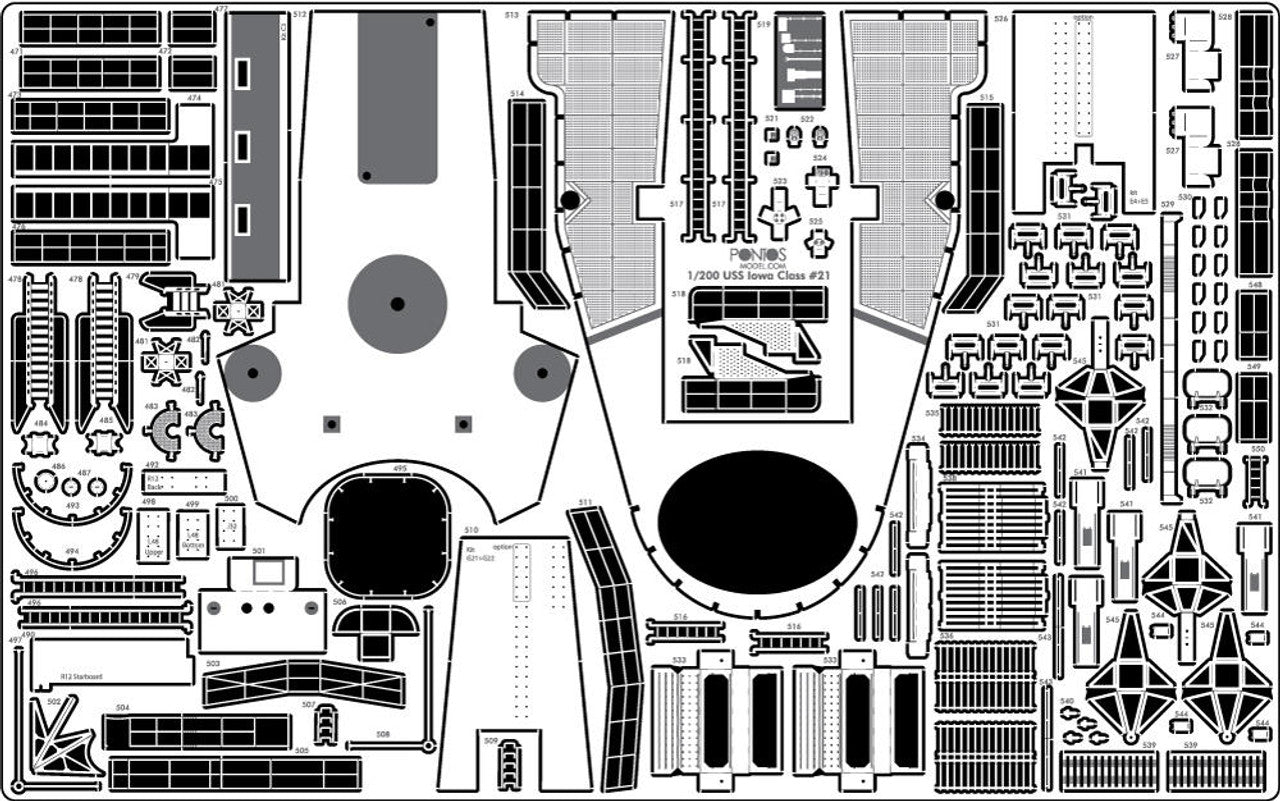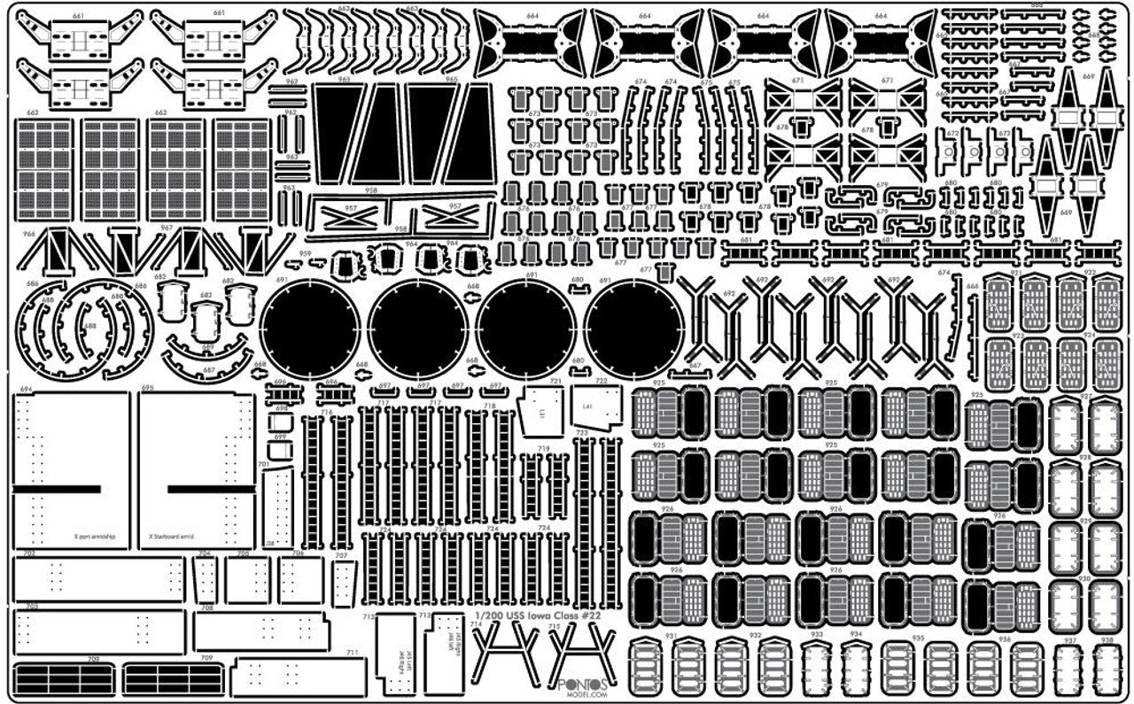 1/200 Pontos Model USS BB-61 Iowa 1944 Detail up set (No wooden deck)