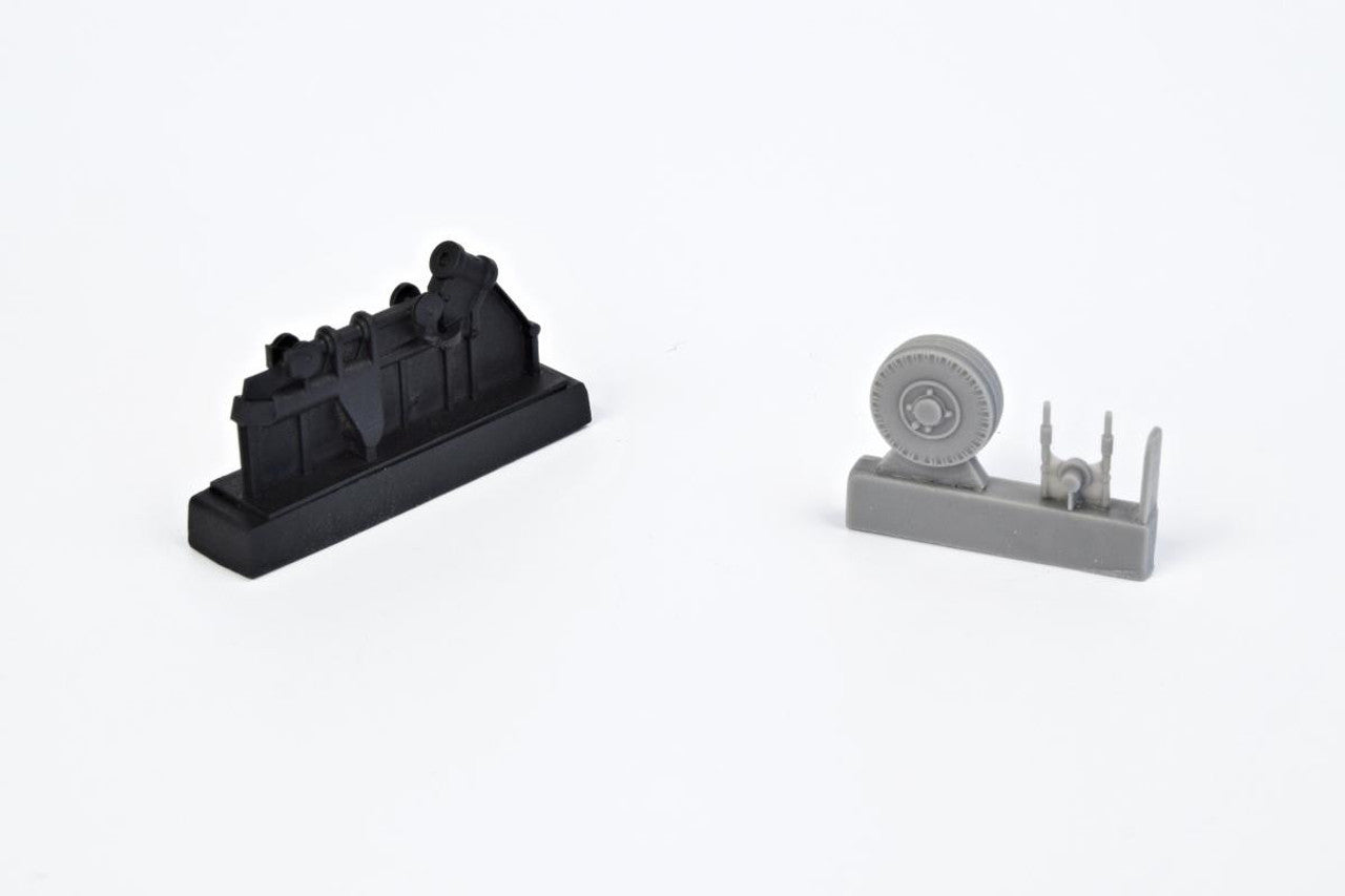 This set contains a brand new tail wheel leg made of specially hardened, oven-baked resin for extra strength. The wheel itself is of a standard type of resin. Both the leg and wheel have been 3D-designed and offer much higher levels of detail compared to the kit parts.