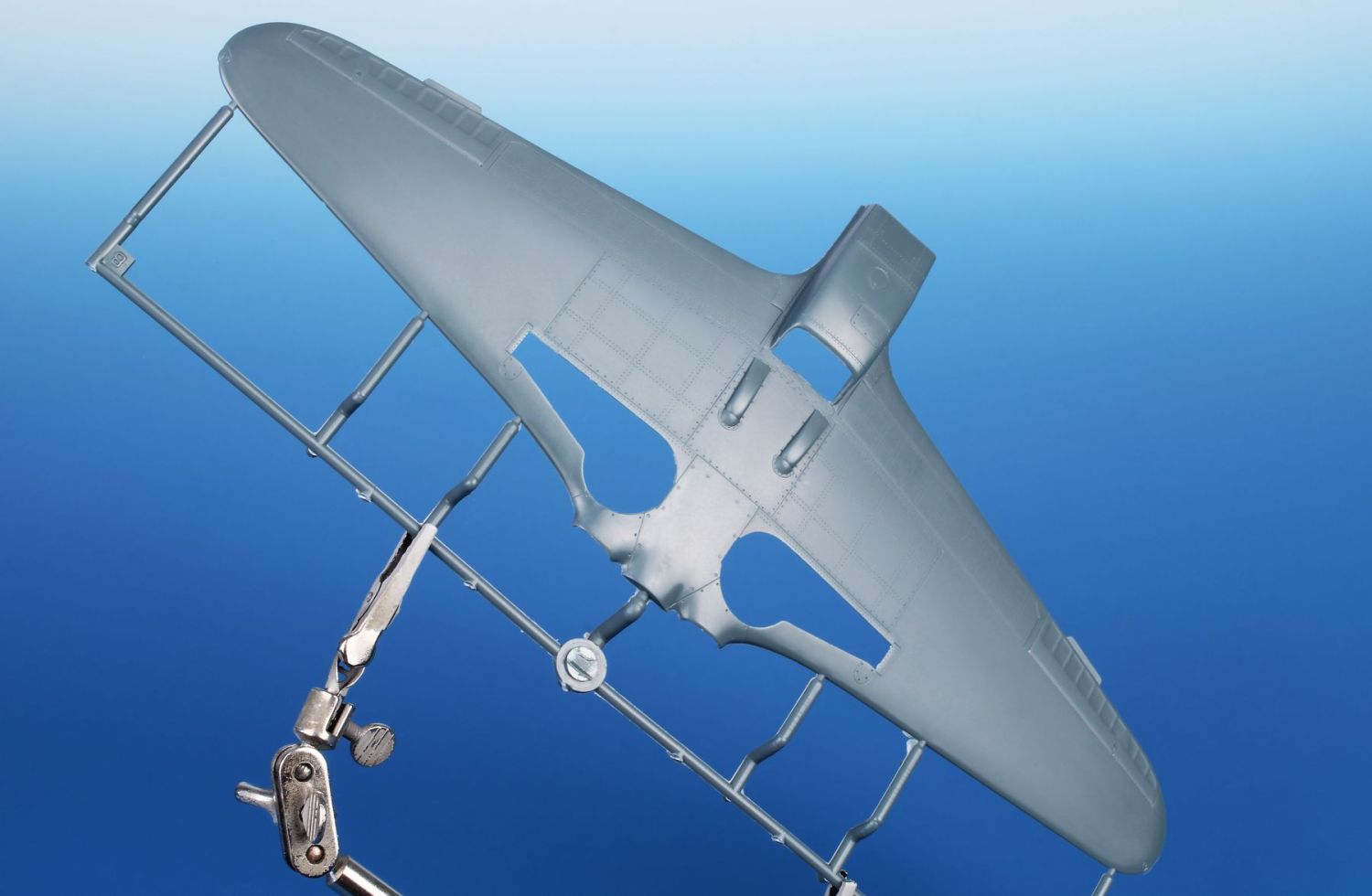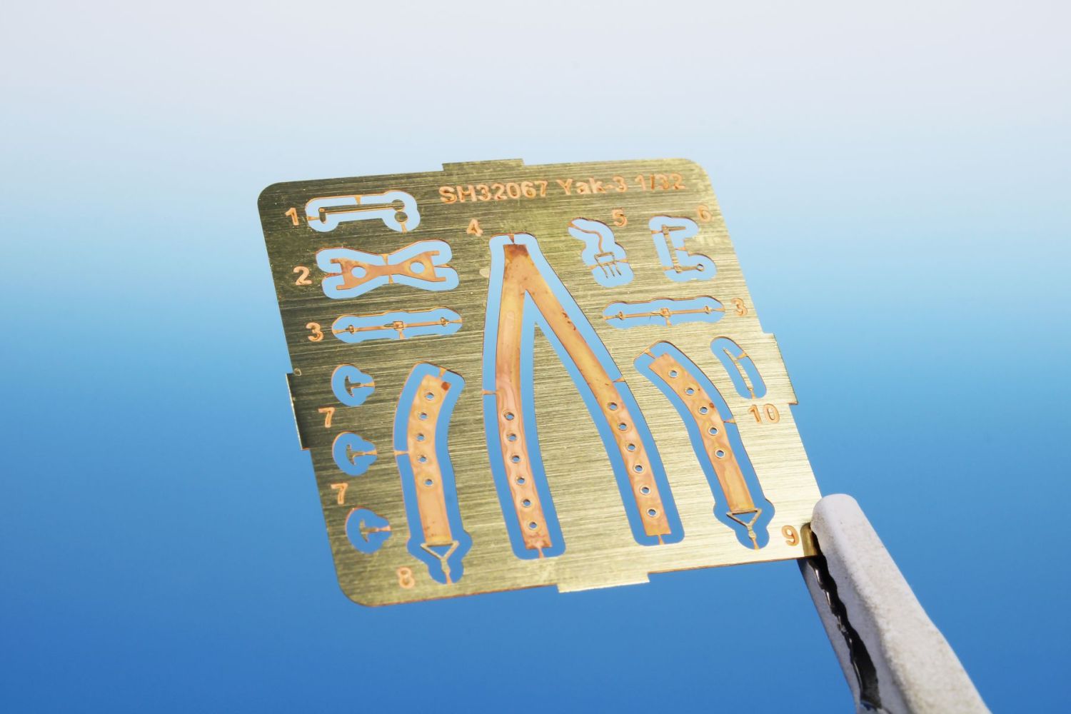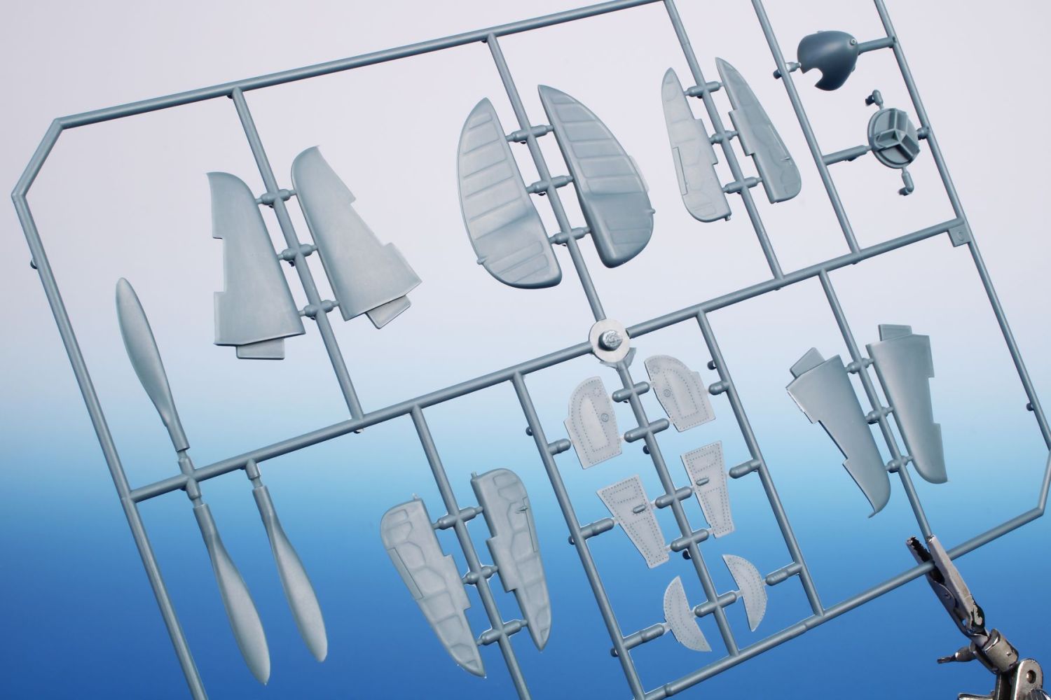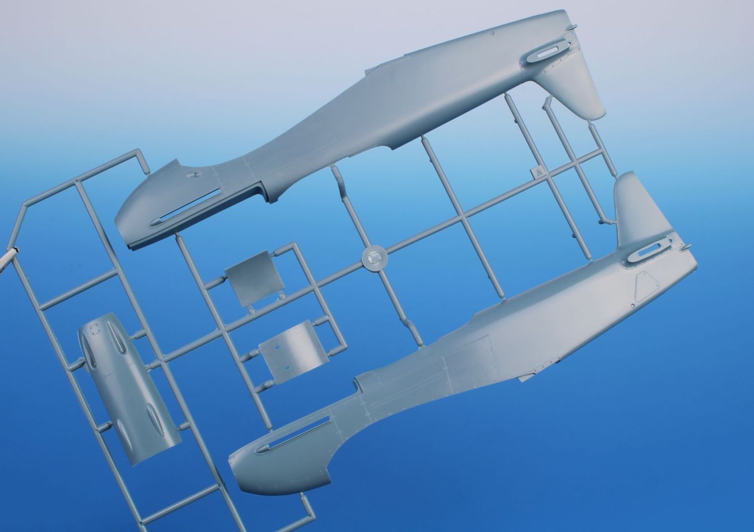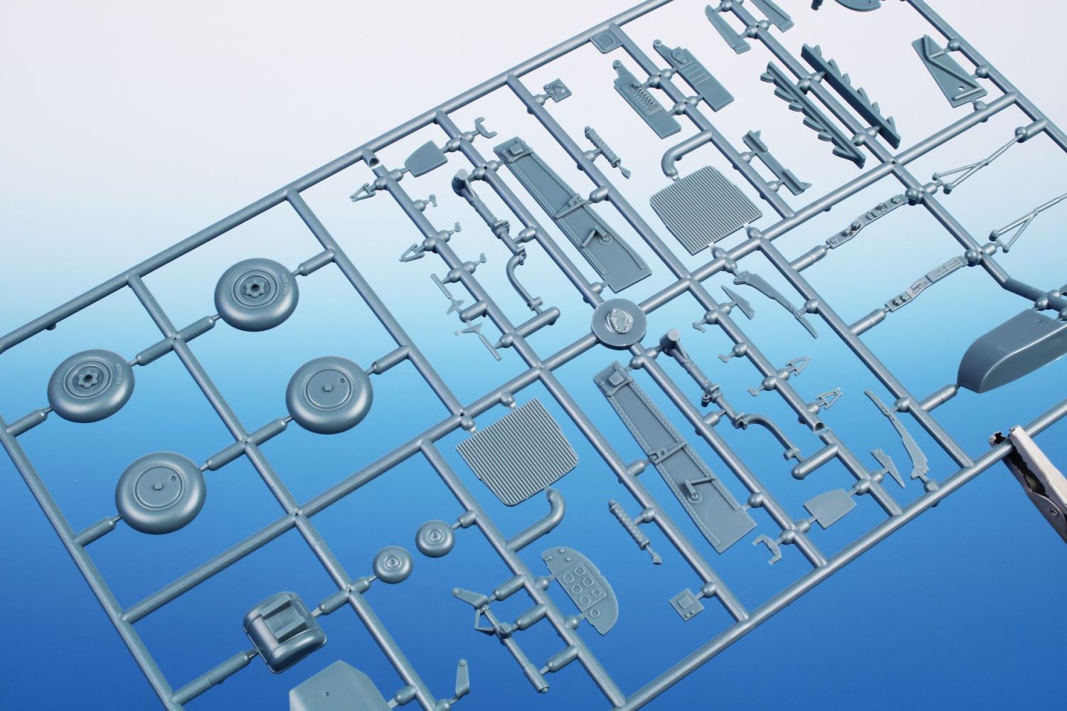The Hi-Tech format decal sheet covers five of the Normandy-Niemen airframes all of which carry their iconic lightning markings on the fuselage sides. Four of the machines were flown by ace pilots including the very best of them Lt.Marcel Albert. The kit comes on three grey styrene sprues, one with clear parts. The Hi-Tech format is achieved by the extra parts as the resin cast exhausts, undercarriage wheels, both the main ones and the tail one, machine gun breech details, wireless and machine gun barrel ends. The model also contains spray masks and fine photo etches of the seat belts and other smaller cockpit details.