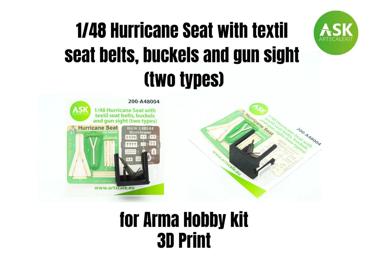 1/48 Art Scale Hurricane Seat with Textile Seat Belts, Buckels and Gun Sight (Two Types) 48004