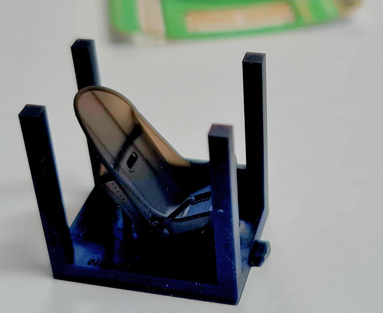 1/48 Hawker Hurricane 3D-print Seat with textil seatbelts, photoetched buckles and two different transparent gun sights.