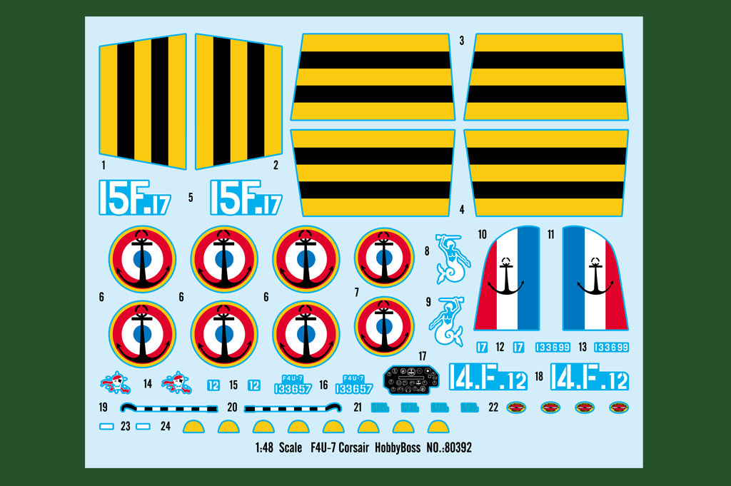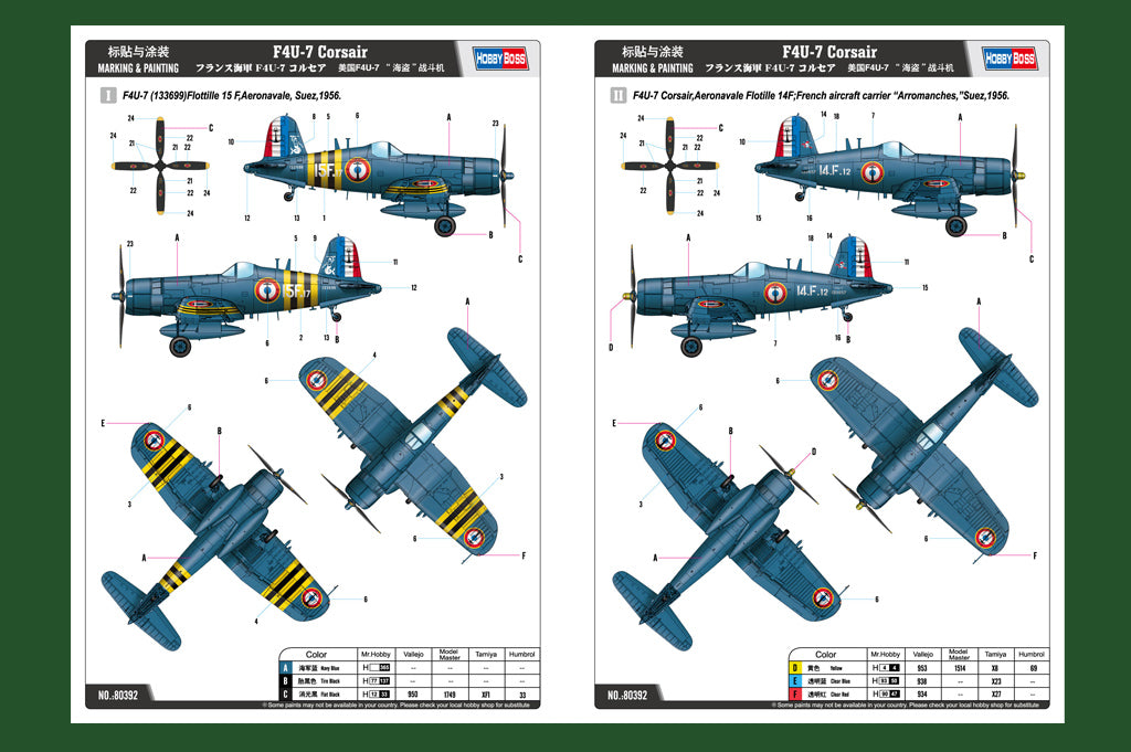 The F4U-7 is the export model for France, and also the last model of the Corsairs. Totally 94 aircraft of this version were built. This model is the derivative of the F4U-5/AU-1, the prototype took the first flight on July 2,1952.