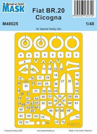 Pre-cut self-adhesive masks for the quite intricate glazing of Special Hobby’s 1/48 Fiat BR.20 Cicogna Italian bomber model kit.