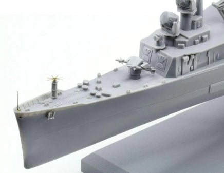 The new Cyber-Hobby kit is made precisely to 1/700 scale. The kit is a product of all-new toolings, with the exception of miscellaneous fittings such as missile launchers, radar and some other small parts. The hull comes with the option of full-hull or waterline versions, while the ship’s superstructure is finely reproduced. Many of the parts are products of slide molds to ensure maximum detail is rendered and to guarantee easy assembly. There are also some photo-etched parts to improve the overall level of detail allowed by plastic molding. This is a fine new kit of USS Albany in its existence as a guided missile cruiser.