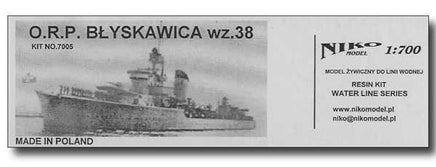 1/700 Niko Model Polish Destroyer Blyscawica 1938 Resin Model Kit