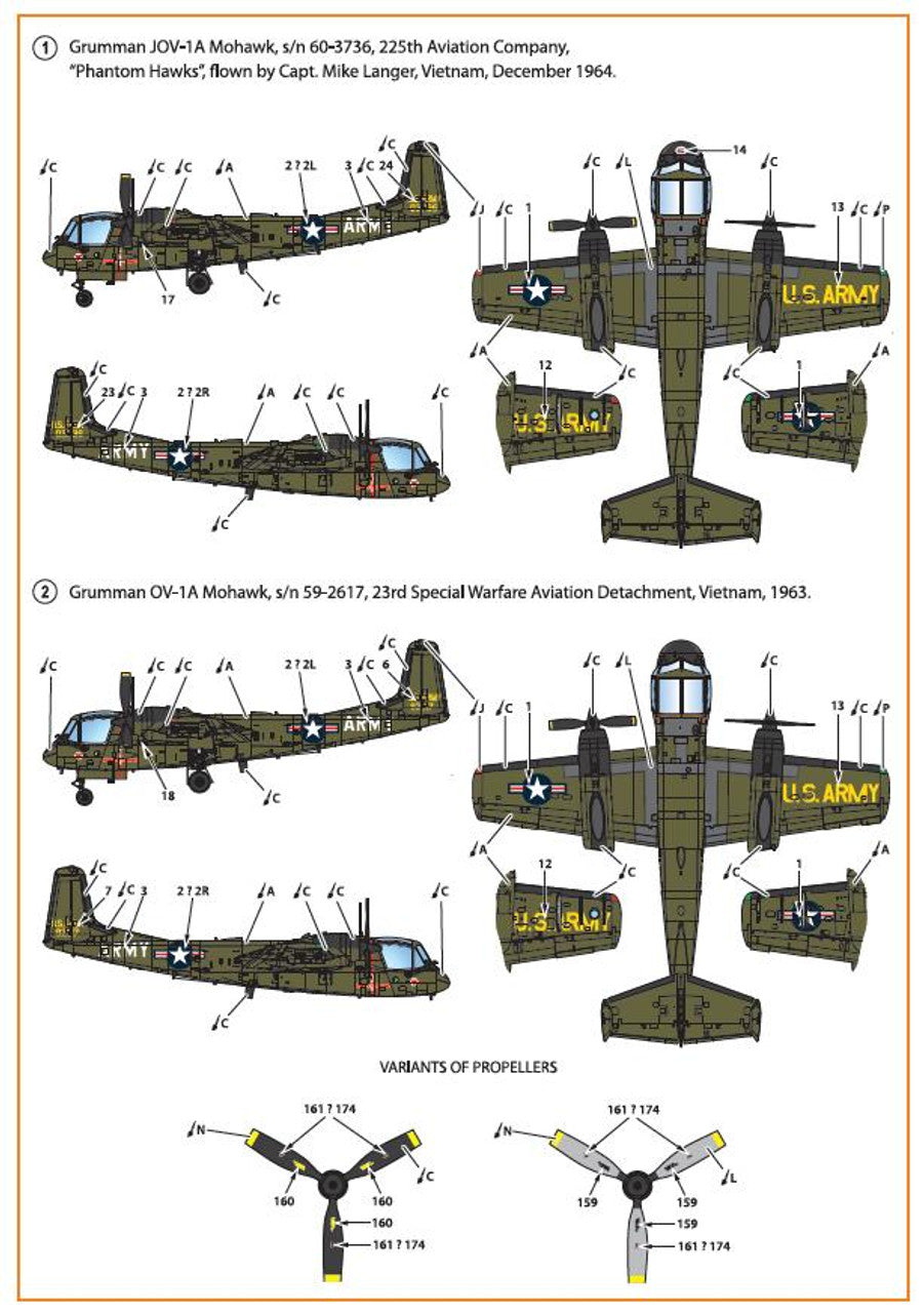 1/72 Clear Prop OV-1 A/JOV-1A Mohawk Decal Set