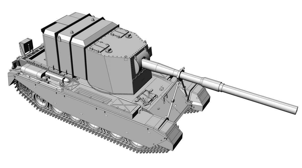 For a short time in the storied history of the Centurion Main Battle Tank (MBT), a heavily armed self-propelled gun (SPG) variant was entertained as the FV4005 "Stage 2". This vehicle utilized the existing chassis and hull superstructure of the Centurion MBT mated to a fully-enclosed, 360-degree traversing turret housing a 183mm (7.2") Howitzer main gun (the BL 7.2-inch field howitzer). An earlier attempt saw the Centurion up-gunned with the 183mm weapon (with automatic loader) in a limited-traverse mounting sans the turret and this became the FV4005 "Stage 1" - both forms were related to the earlier FV4004 "Conway" which attempted to up-gun the Centurion with a turreted 120mm L1 weapon to serve while the FV214 "Conquerer" heavy tank was still being developed. The FV4005 program began in 1951 with development stemming into 1955. However, the initiative fell to naught and was ended in 1957. Turret was dismounted from a chassie. A sole example of the FV4005 Stage 2 went on to be preserved outdoors on the grounds of the famous Bovington Tank Museum in England (original turret mounted on a Mk.8 chassie.)