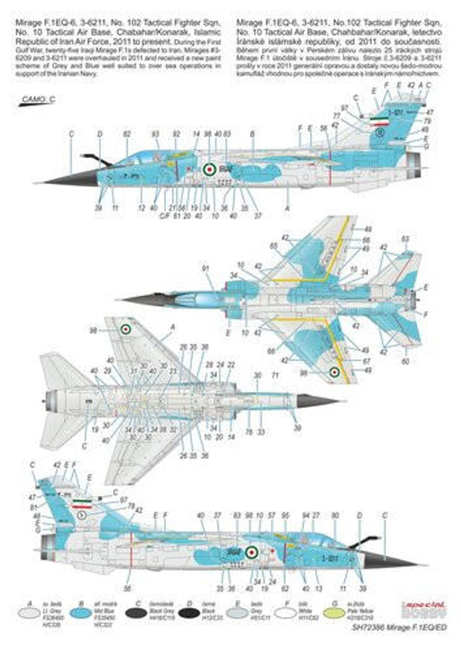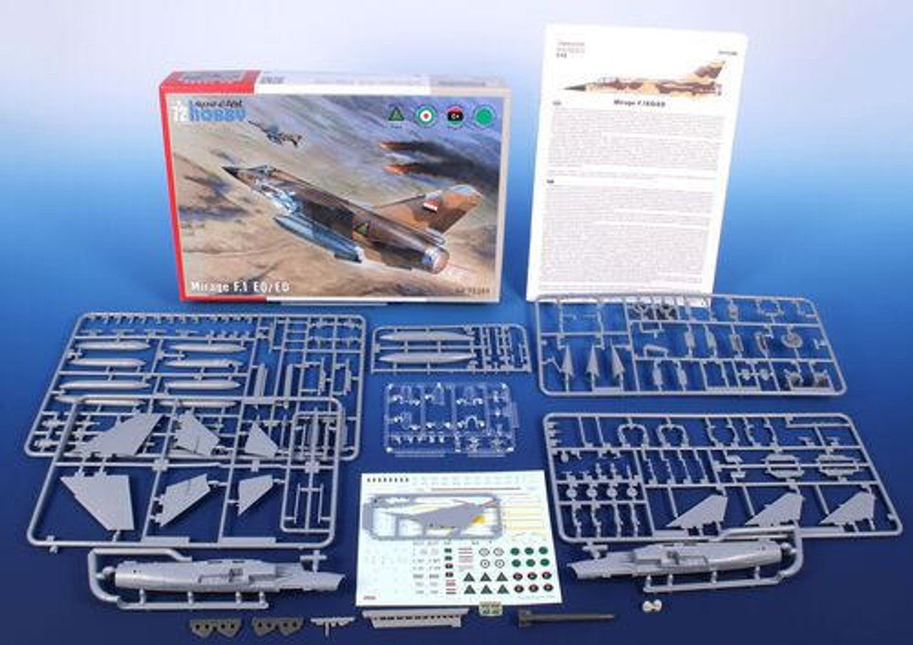 The Mirage F.1 EQ/ED is back in production – due to popular demand, but just in limited quantity. This detailed model of the EQ/ED variety of the F.1 Mirage comes with seven grey styrene sprues, one clear plastic sprue with canopy parts, it also contains a fret of photo etches and a resin cast replica of the Exocet missile with its pylon. The decal sheet offers two Iraqi machines in two different schemes, plus one Libyan and one Iranian machines.
