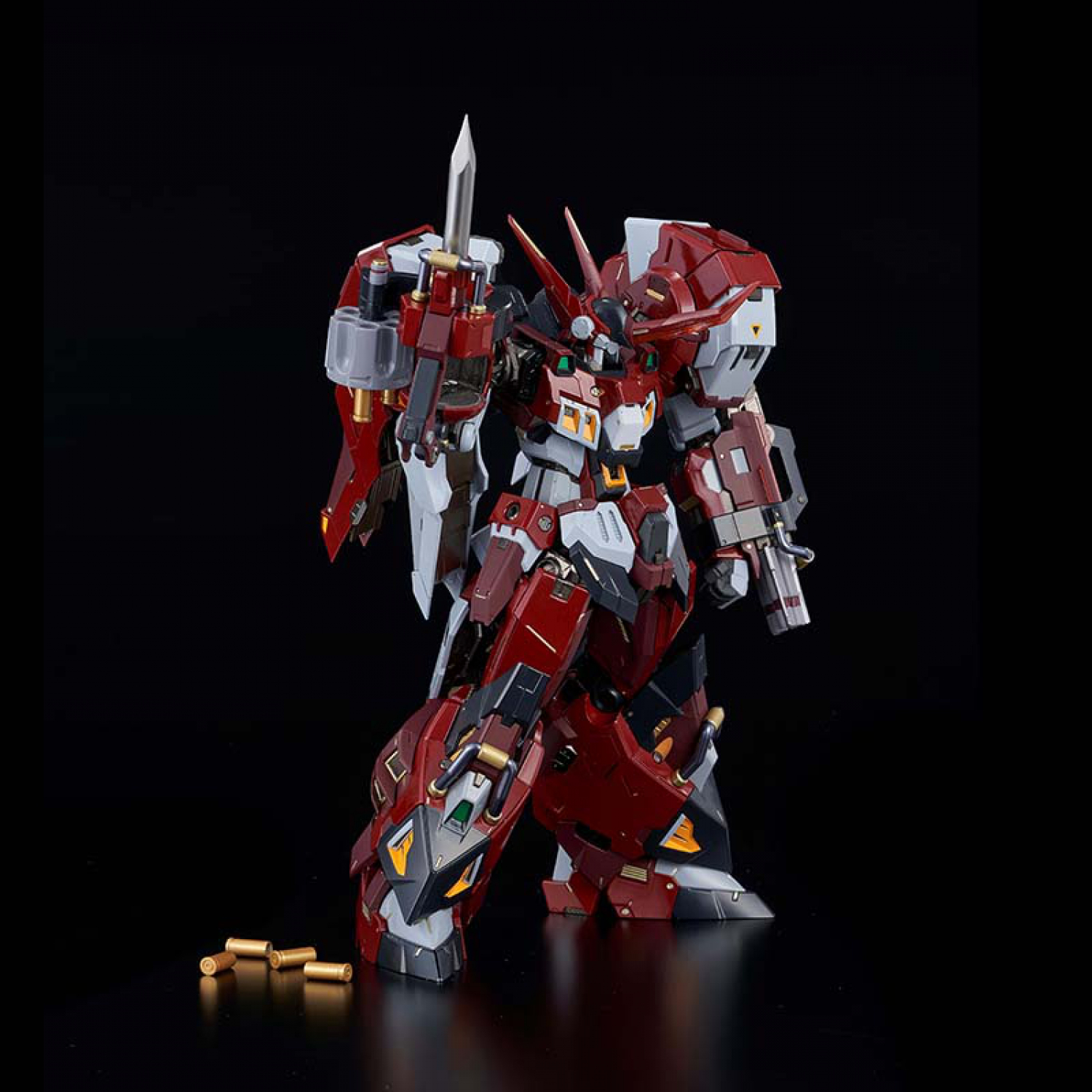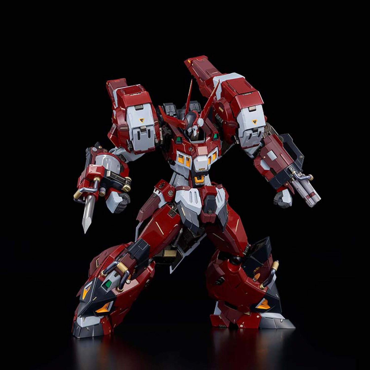 To embody in a collectible toy the concept of "a robot which is capable of swiftly breaking through enemy forces with overwhelming power" represented in the game, the figure comes with various styles of weapons and an incredible amount of detail.