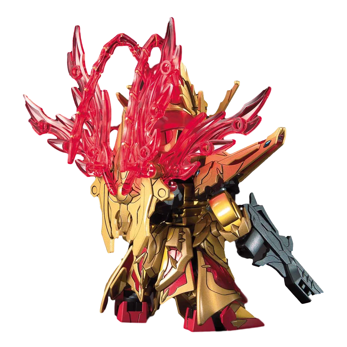 The military planner of Red Tiger, Zhou Yu supports Sun Jian with his battle tactics. Based on the Gundam Akatsuki, he has a special flame thrower that can combine with the shield to produce flaming wings, also known as Shiranui Mode.
