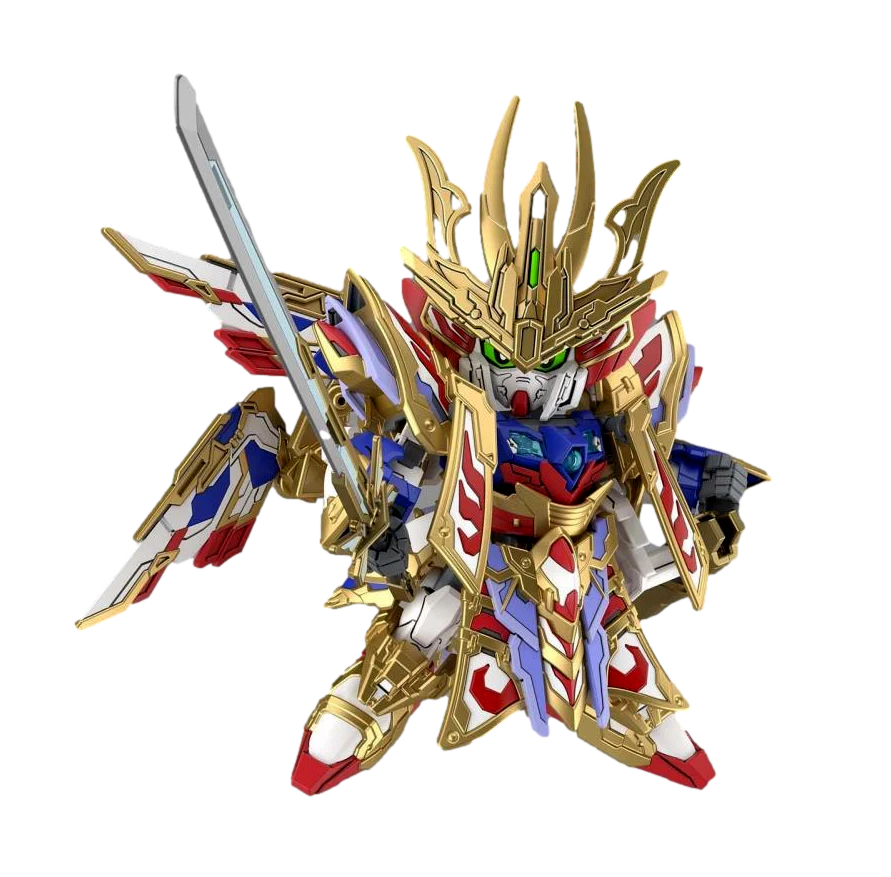 From Gundam's newest anime film, SD Gundam World Heroes, comes a model kit of Cao Cao Wing Gundam in its Isei Style! This model kit includes several accessories including a saber, sheath, mask, and clear effect parts for the wings, helmet and sword. When complete this model kit will stand about 6 inches tall.