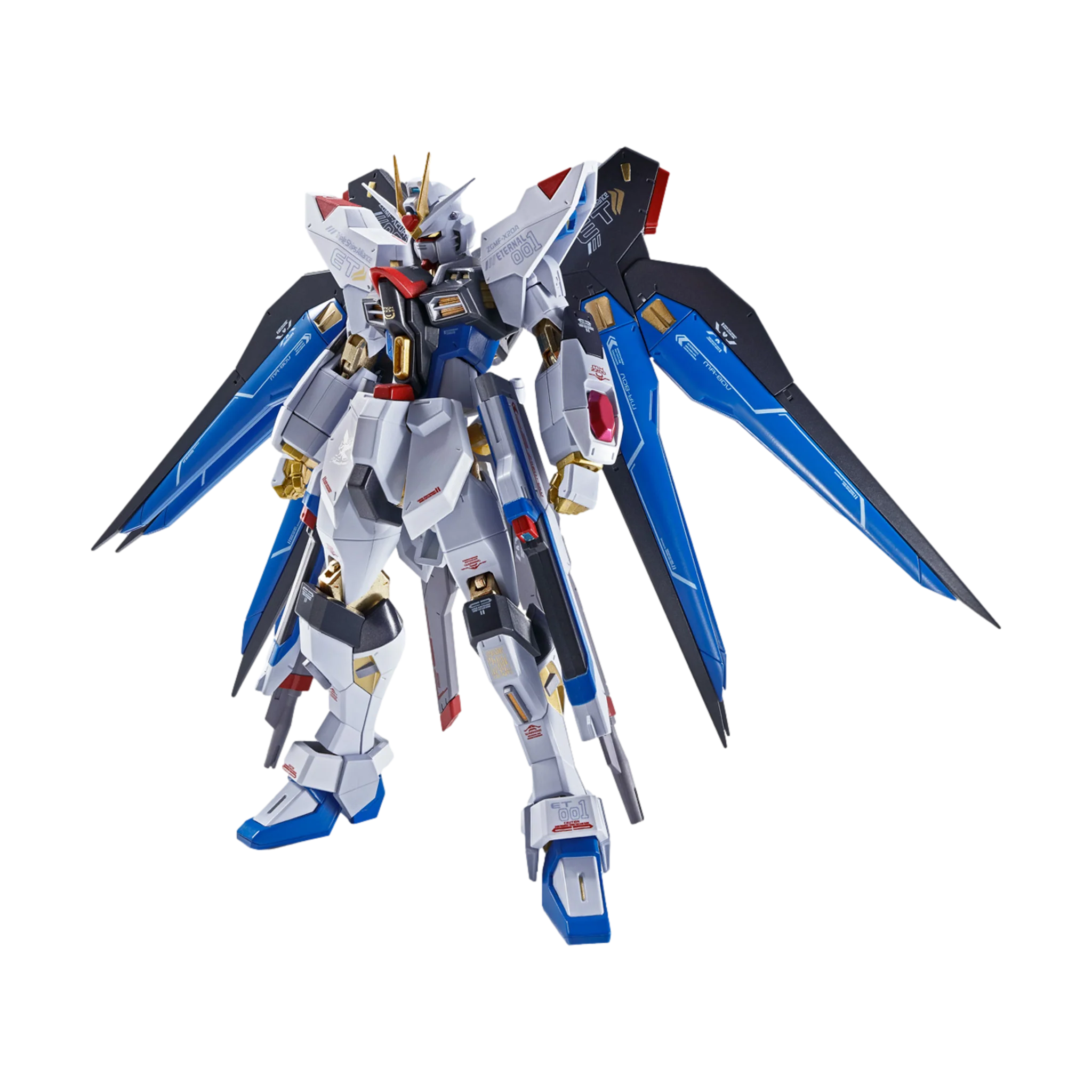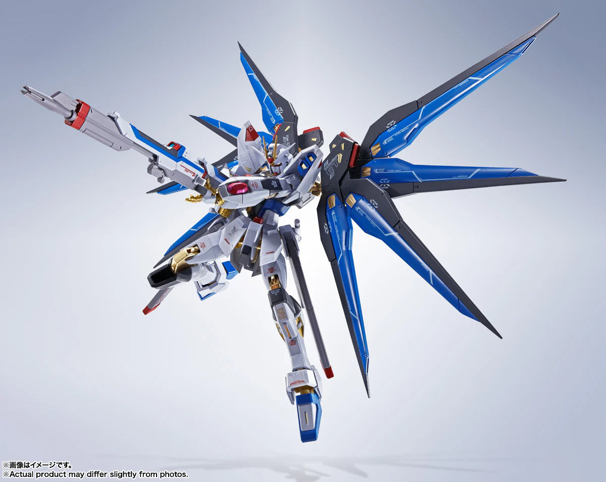 The Strike FREEDOM GUNDAM from Mobile Suit Gundam SEED Destiny has been re-released as a METAL ROBOT SPIRITS [Re:Coordinate] model with revamped paintwork and markings! While retaining the sharp design that reflects the proportions in the series and the solid feel of the die-cast parts, it has been redesigned with new paint and molding colors, newly designed markings, and other changes to the specifications, and is now re-coordinated into the latest format [Re:Coordinate].