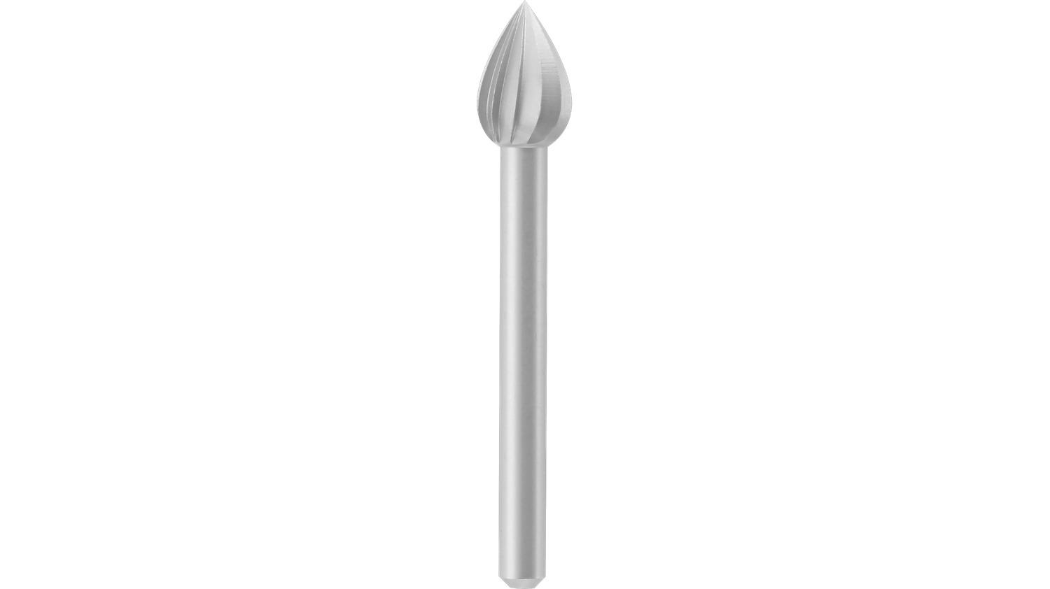 • The flame shape of the carving bit makes concave side cuts, v-bottom slots, and grooves