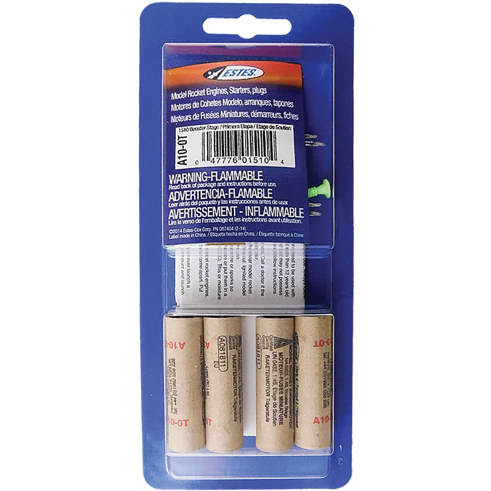 These engines are prized for their consistency and clean staging behavior, which makes tuning and repeat flights simple and enjoyable. Packaged for convenience, the A10-0T is a dependable choice when you want repeatable performance on every launch.