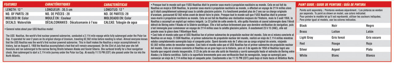 1/300 Scale. Measures over 12 inches long. Molded in Dark black gray and clear. Updated decal sheet and new artwork. Skill level 2. This kit also comes with a STEM booklet explaining the history of early submarine development. A great learning tool for all.