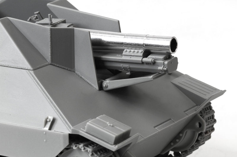 Dragon’s 1/35 scale Hetzer family is being enriched with new kits. The latest is the 15cm s.IG.33/2 (Sf) auf Jagdpanzer 38(t) Hetzer, which was a tracked infantry support vehicle. The gun mounted on a Hetzer chassis was the well-known 15cm s.IG.33/2 howitzer, Germany’s standard heavy infantry gun throughout WWII. Czech manufacturer BMM converted six vehicles and built an additional 24 based on the Bergepanzer 38(t) recovery vehicle from December 1944 onwards. This vehicle featured a raised superstructure, while the mount and shield for the s.IG.33/2 was the same as that used on a self-propelled howitzer based on the Pz.Kpfw.38(t) chassis.