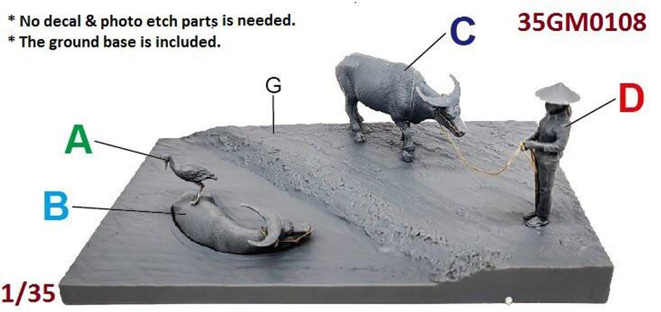 Set includes 1 farmer, 2 water buffaloes, and 1 waterfowl.