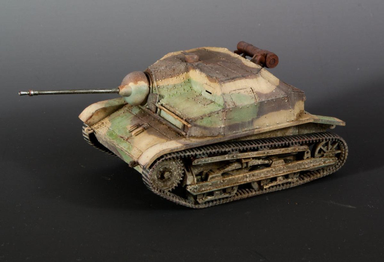 TKS was a Polish light reconnaissance tank (tankette), built and produced in the thirties. It was based on an older tankette design – the TK 3. The main improvements, compared to its predecessor, were: modified frontal armor shape, different engine, thicker armor plates, improved drive train and added commanders periscope. Serial production started in 1934 and the total of 280 tanks were produced. Initially TKS Tankettes were armed with a Hotchkiss wz. 25 machine gun. Just before the outbreak of World War II army command decided to change the armament to NKM (Heaviest Machine Gun) wz. 38 FK-A 20mm – this Polish gun has proven to be very effective against the German tanks during the September 1939 German invasion of Poland. Unfortunately only 23 of the up gunned TKS tanks made it to the front line, most of them were still armed with the Hotchkiss machine gun.
