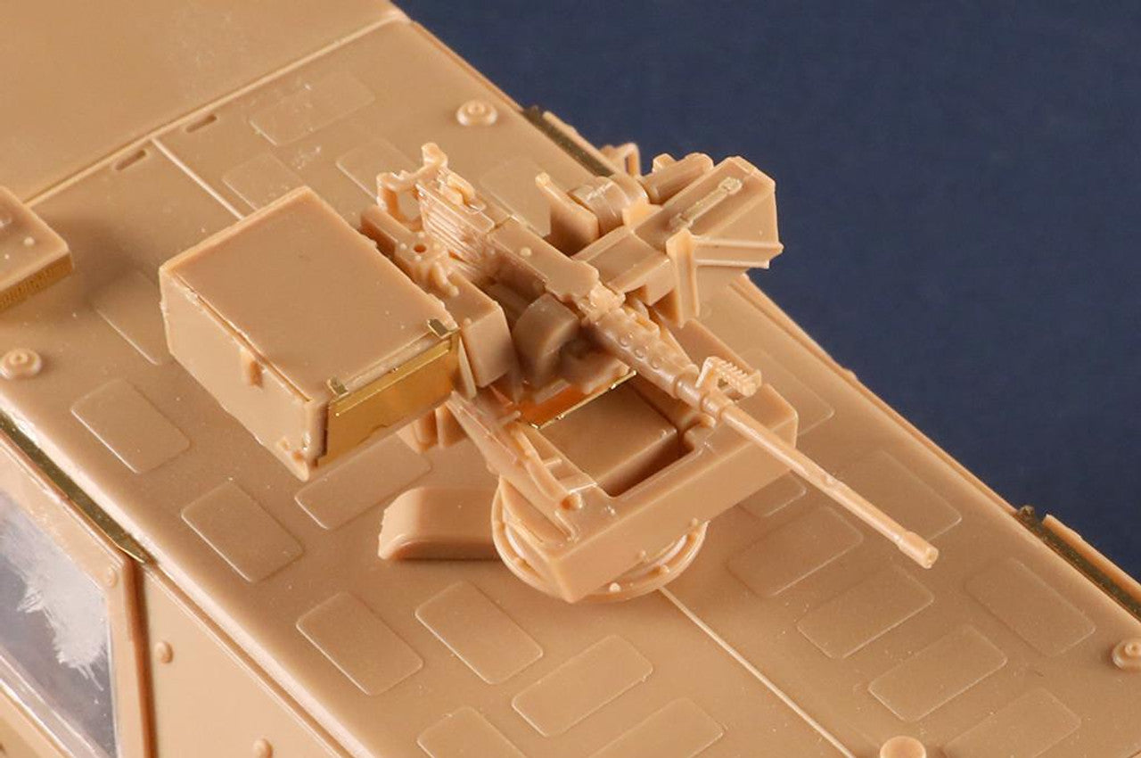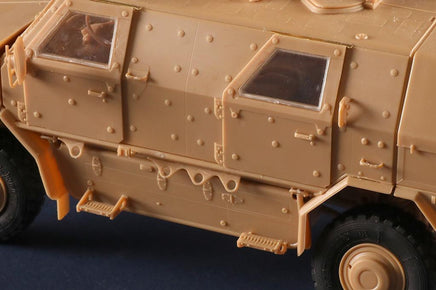 This ambush protected vehicle has a V-shaped hull and armored crew capsule. The Dingo 2 provides protection against landmines, small arms fire and artillery shell fragments. Armor protection can be enhanced with add-on panels. The Dingo 2 is also fitted with NBC protection system.