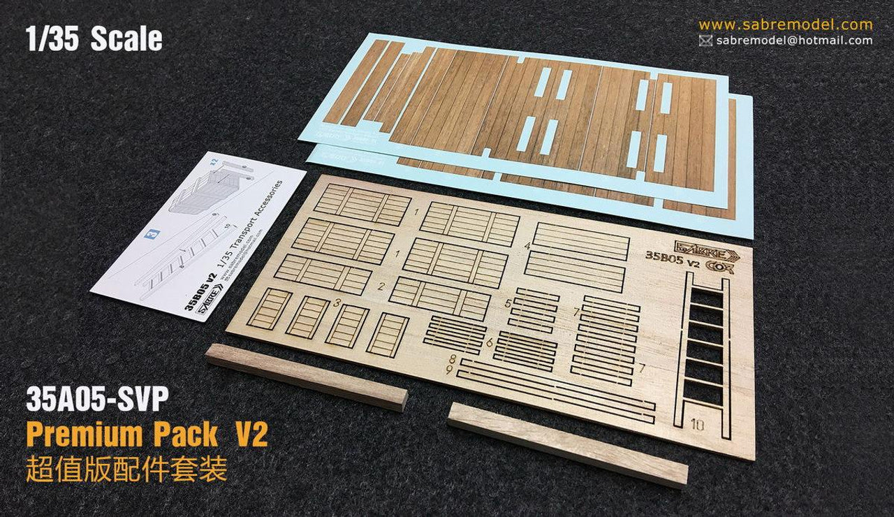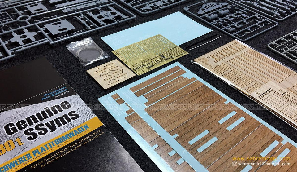 1/35 Genuine SSyms - German Railway SCHWERER PLATTFORMWAGEN 6-Axle 80ton (Precision Pro Edition) - Super Value Edition 35A05 Standard Edition Extra added premium pack: 35B03 - Complete Wood Grain Decals for deck of 35A05 + 35B05 - Wooden Transport Accessories (Transport case, ladder, wooden strip)