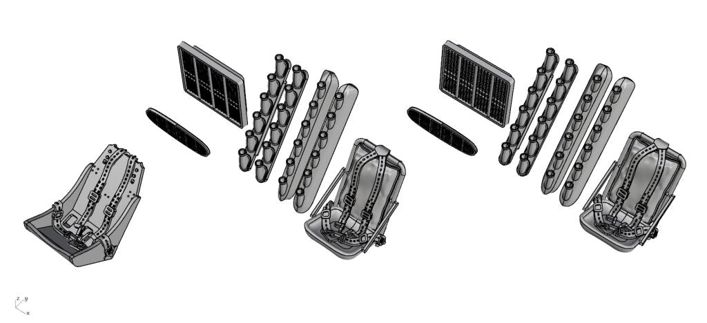 - Double set of 3D printed accessories (3 seats in 2 variants with seatbelts, 2 variants of exhaust tubes, radiators)