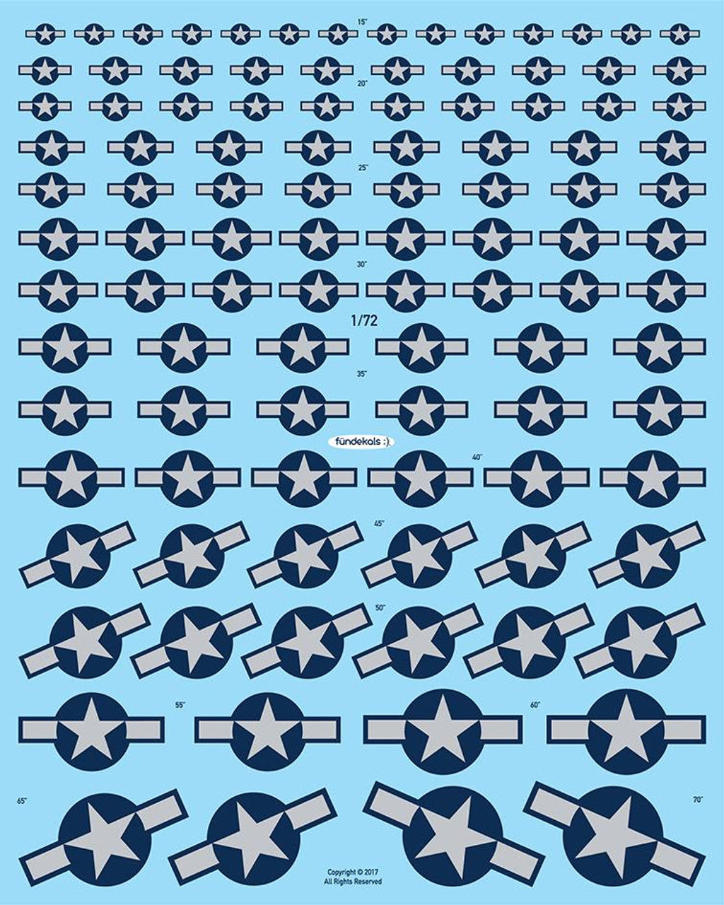 1/72 Fundekals STARS & BARS GRAY WWII 72010