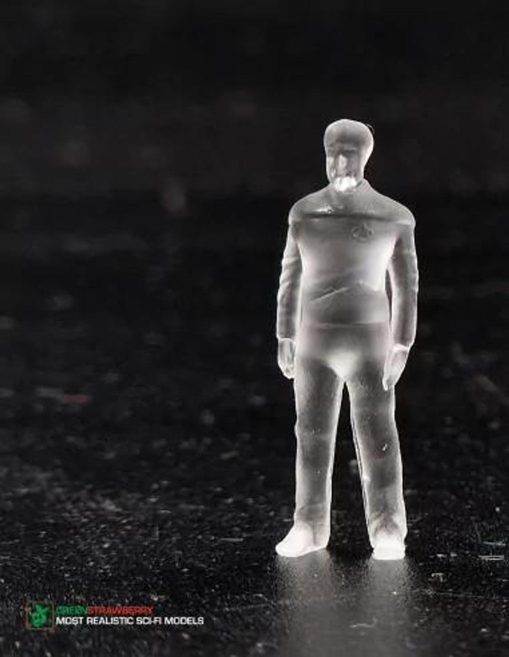 2 figures in clear resin of Star Trek crew simulation person in transporter. Characters are from the Star Trek TNG, DS9, Voyager in 1/72 scale.
