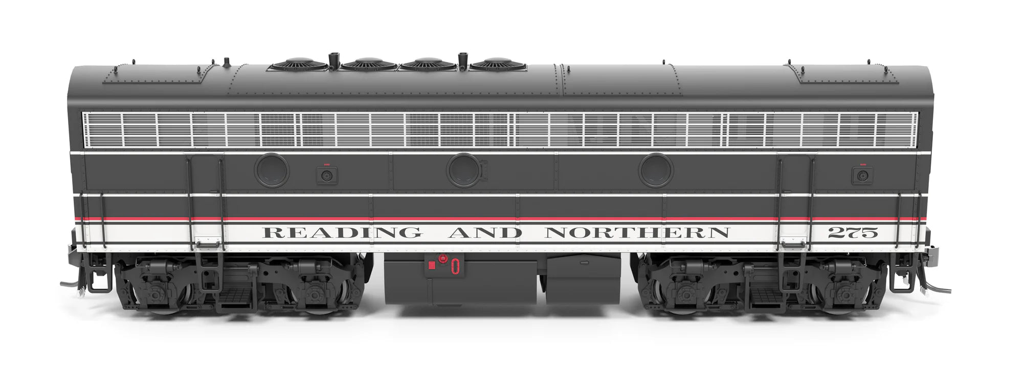 In this production, we are offering newly tooled A and B units to represent the Norfolk Southern executive F units as they ran before being sold to RBMN and the ACWR. In addition to the NS executive locomotives, we are also offering the RBMN and ACWR schemes. Other road names included in this run are the CDOT New Haven McGinnis scheme, Chicago and Northwestern Executive F7's, Amtrak, and a Fantasy Wheeling and Lake Erie scheme with Chase's Train Garage.