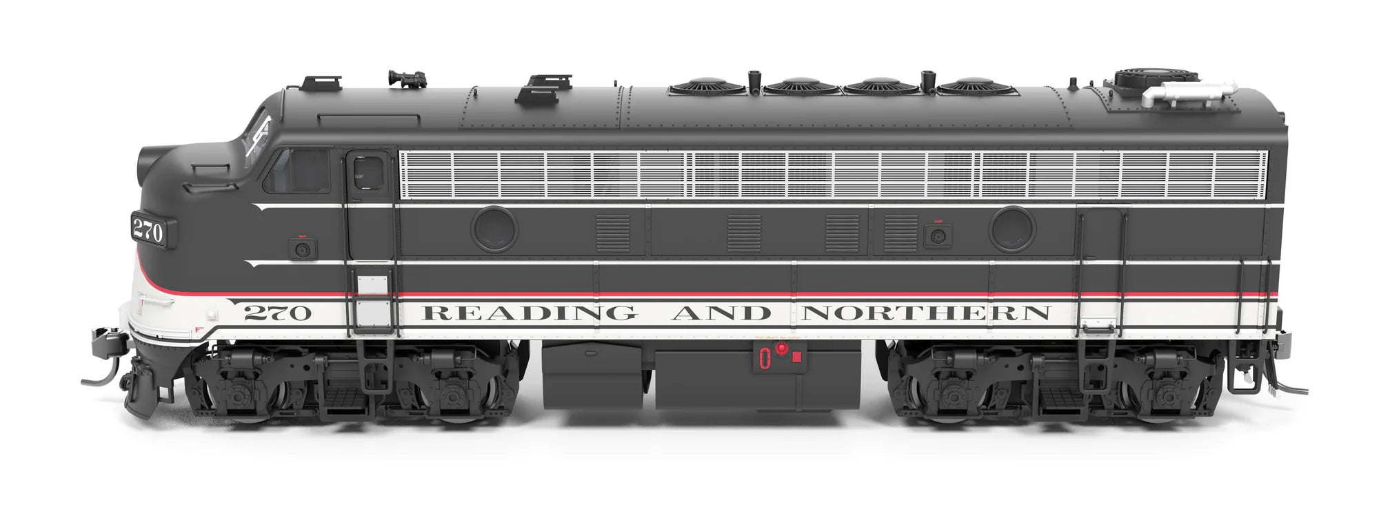 In this production, we are offering newly tooled A and B units to represent the Norfolk Southern executive F units as they ran before being sold to RBMN and the ACWR. In addition to the NS executive locomotives, we are also offering the RBMN and ACWR schemes. Other road names included in this run are the CDOT New Haven McGinnis scheme, Chicago and Northwestern Executive F7's, Amtrak, and a Fantasy Wheeling and Lake Erie scheme with Chase's Train Garage.