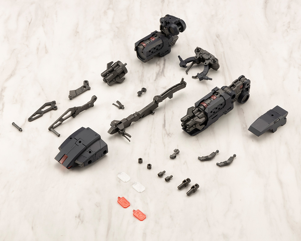 The main colors are black and gunmetal from HEXA GEAR, while the sensors are the same clear red as used in many Kotobukiya model kits, making it compatible with a wide range of products. It can be ridden, worn, or even used in customizations, where its expertly crafted design really shines.