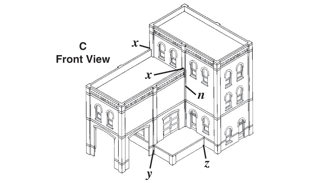 Build a building approximately 7 1/2" w x 8 1/2" d x 7" h (19 cm x 21.5 cm x 17.7 cm). Add detail and realism to your completed building with Dry Transfer Decals and Model Graphics®.