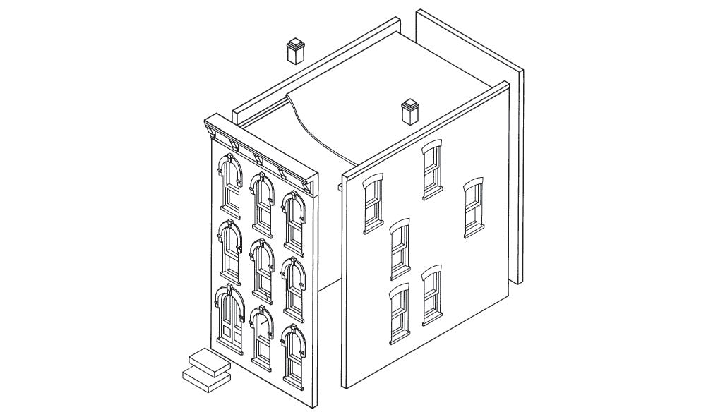 Purchase Dry Transfer Decals and Model Graphics® to detail Townhouse #2! Use the Dry Transfer Burnisher to apply the decals. See photos for footprint.