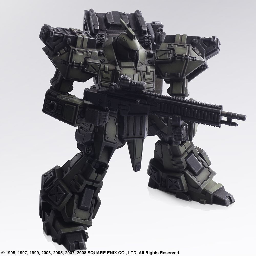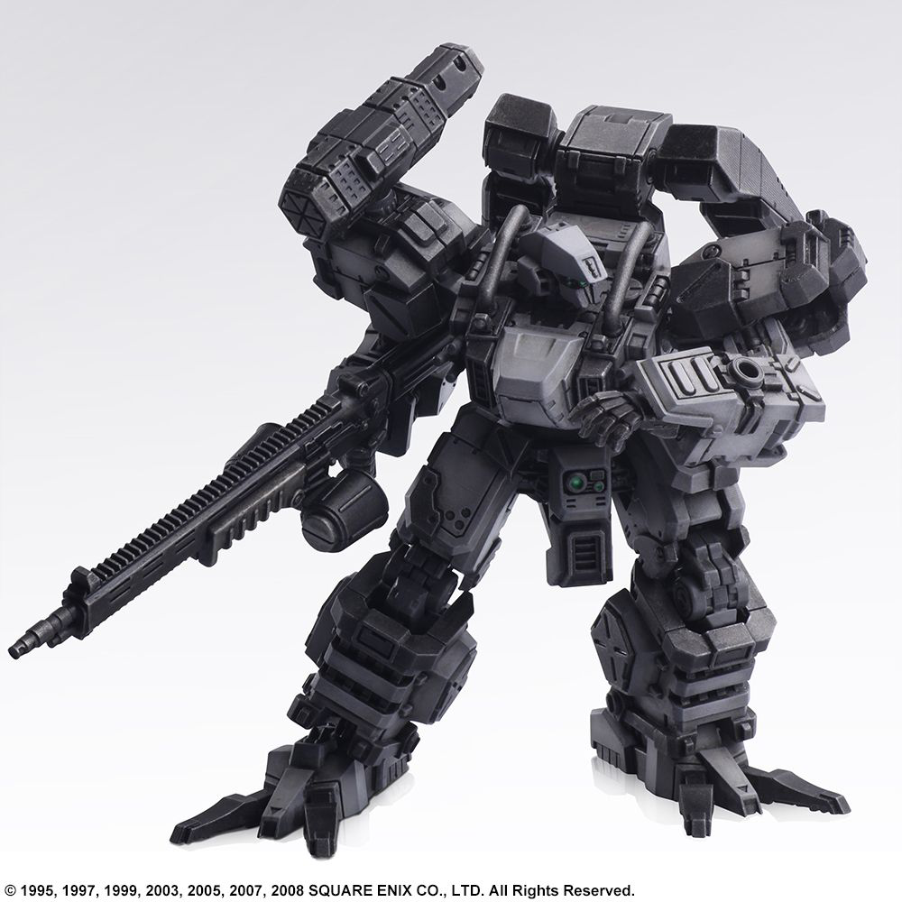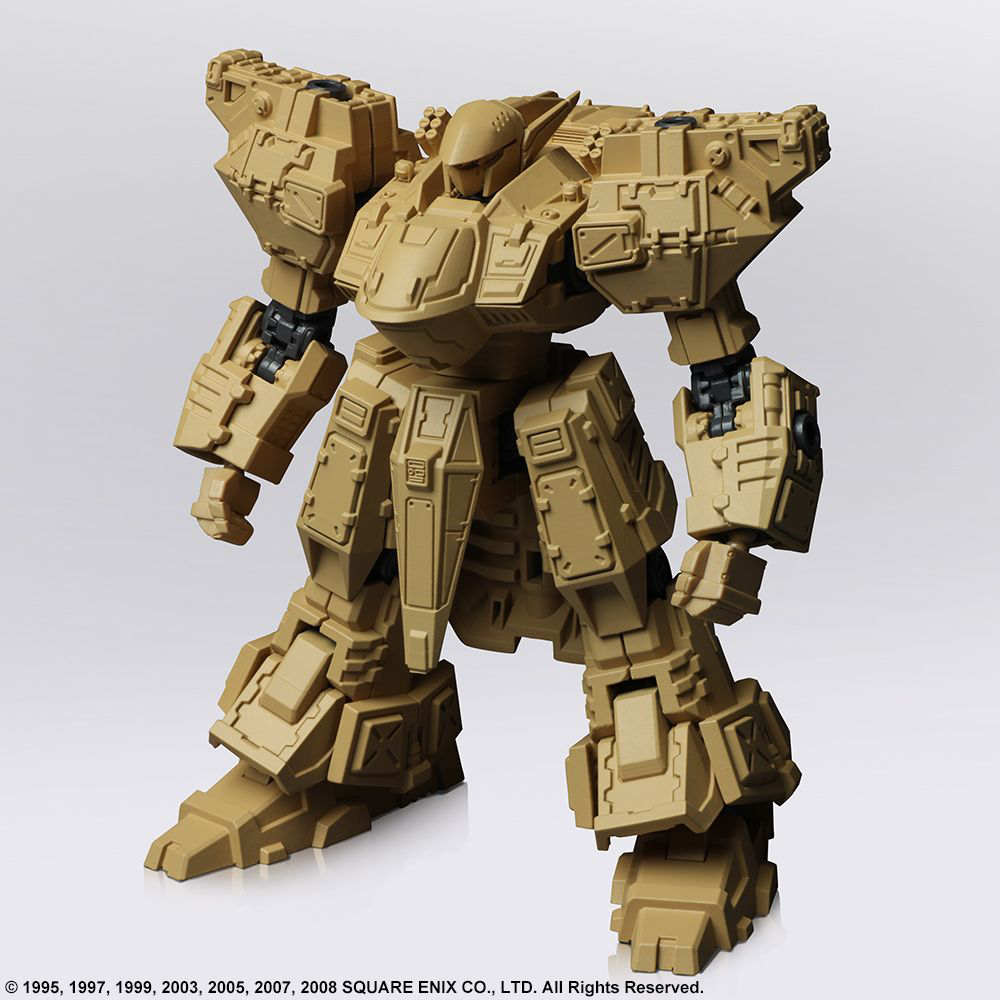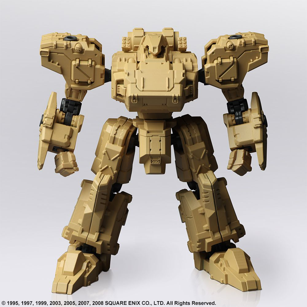 We are pleased to present the second set in the STRUCTURE ARTS line of plastic model kits by Square Enix. In Vol. 2, we are featuring the FROST, TIRAN, ENYO, and WALRUS designs from the FRONT MISSION franchise. Similarly, to Vol. 1, these are designed at 1/72 scale, so it can be used in conjunction with military miniature figures and diorama displays of the same scale. Once again, we made sure the torso, arms, lower body, backpack and hand-held weapons are cross compatible between all the models, plus each model has a total of four hardpoints on the shoulders and arms, allowing you to attach weapons or shields. Additionally, there are utility parts included so you have the option to equip or simply carry your artillery. In-game, your loadout might put you over the weight limit, but we wanted to offer more options when you set up your diorama or play with the models. Now, the coloring you see on each of the parts in the photograph are representative of the pigment injected into the actual mold. Furthermore, we are offering a separate lineup featuring a set of six, red color-variant FROST units so you can recreate the “Hell’s Wall” squad. Build it as-is, paint it whatever color you please, try various ways of assembly, customize the pieces to create your own original unit, set up a diorama – with so many options to choose from, we hope you find your own way of enjoying these. FROST, Diable Avionics’ signature Wanzer equipped with a durable yet mobile armor, is recreated with its sense of weightiness in this model kit. ENYO, produced by Kirishima Heavy Industries, is primarily suited for long-ranged support. We have recreated the unpolished yet streamlined, smart form while brushing it up for this model kit. The WALRUS, which first appeared in FRONT MISSION 2, is a versatile Wanzer that can perform in any terrain. We have recreated its stable, balanced form, and brushed it up for this model kit. The TIRAN is a Wanzer developed using the highly advanced technological knowledge of the Demitri Corp. This kit retains the TIRAN’s unique curved form, while being brushed up.