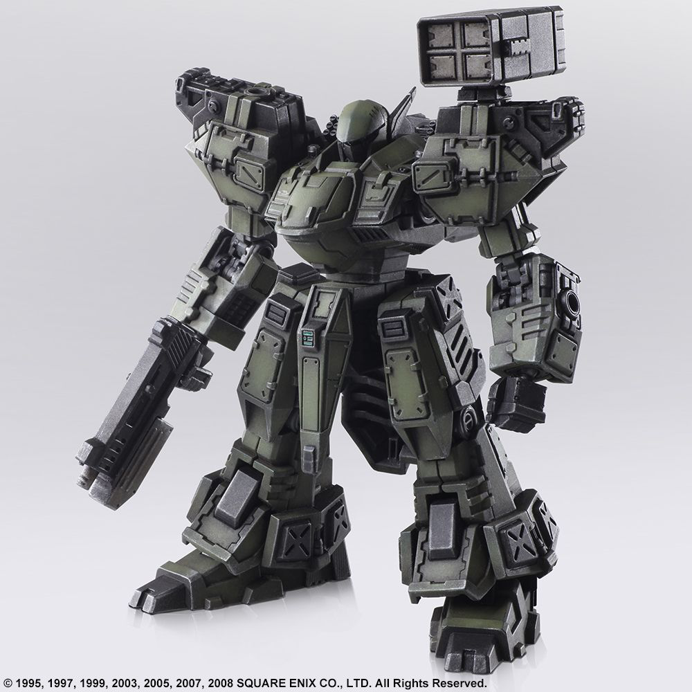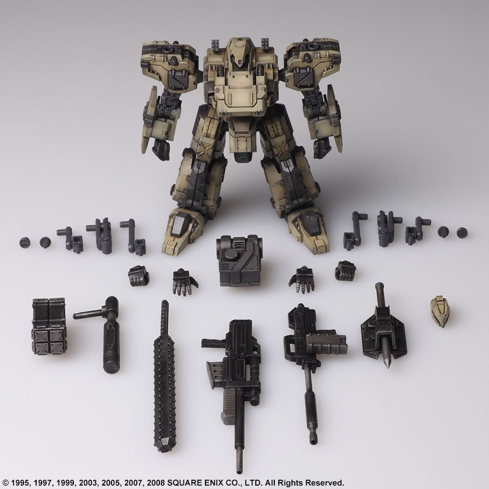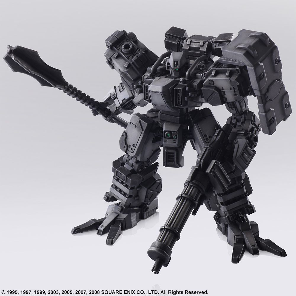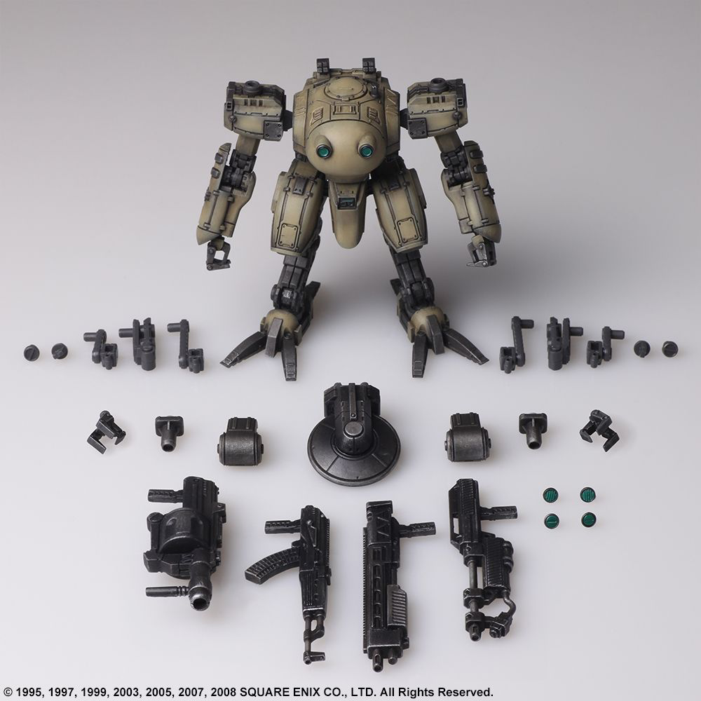 We are pleased to present the second set in the STRUCTURE ARTS line of plastic model kits by Square Enix. In Vol. 2, we are featuring the FROST, TIRAN, ENYO, and WALRUS designs from the FRONT MISSION franchise. Similarly, to Vol. 1, these are designed at 1/72 scale, so it can be used in conjunction with military miniature figures and diorama displays of the same scale. Once again, we made sure the torso, arms, lower body, backpack and hand-held weapons are cross compatible between all the models, plus each model has a total of four hardpoints on the shoulders and arms, allowing you to attach weapons or shields. Additionally, there are utility parts included so you have the option to equip or simply carry your artillery. In-game, your loadout might put you over the weight limit, but we wanted to offer more options when you set up your diorama or play with the models. Now, the coloring you see on each of the parts in the photograph are representative of the pigment injected into the actual mold. Furthermore, we are offering a separate lineup featuring a set of six, red color-variant FROST units so you can recreate the “Hell’s Wall” squad. Build it as-is, paint it whatever color you please, try various ways of assembly, customize the pieces to create your own original unit, set up a diorama – with so many options to choose from, we hope you find your own way of enjoying these. FROST, Diable Avionics’ signature Wanzer equipped with a durable yet mobile armor, is recreated with its sense of weightiness in this model kit. ENYO, produced by Kirishima Heavy Industries, is primarily suited for long-ranged support. We have recreated the unpolished yet streamlined, smart form while brushing it up for this model kit. The WALRUS, which first appeared in FRONT MISSION 2, is a versatile Wanzer that can perform in any terrain. We have recreated its stable, balanced form, and brushed it up for this model kit. The TIRAN is a Wanzer developed using the highly advanced technological knowledge of the Demitri Corp. This kit retains the TIRAN’s unique curved form, while being brushed up.