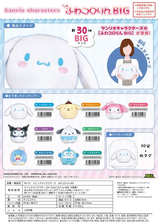 Bring home the charm of Sanrio with the Max Limited Sanrio Characters Fuwa Kororin Big (D) SR-101D collectible figure. This officially licensed product combines authentic character design with premium Japanese craftsmanship.