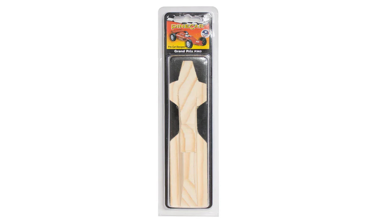Rough-cut, unfinished Grand Prix shape for those who want a great looking racer but may not have the necessary woodworking tools or skills. Simply sand, paint and decorate.