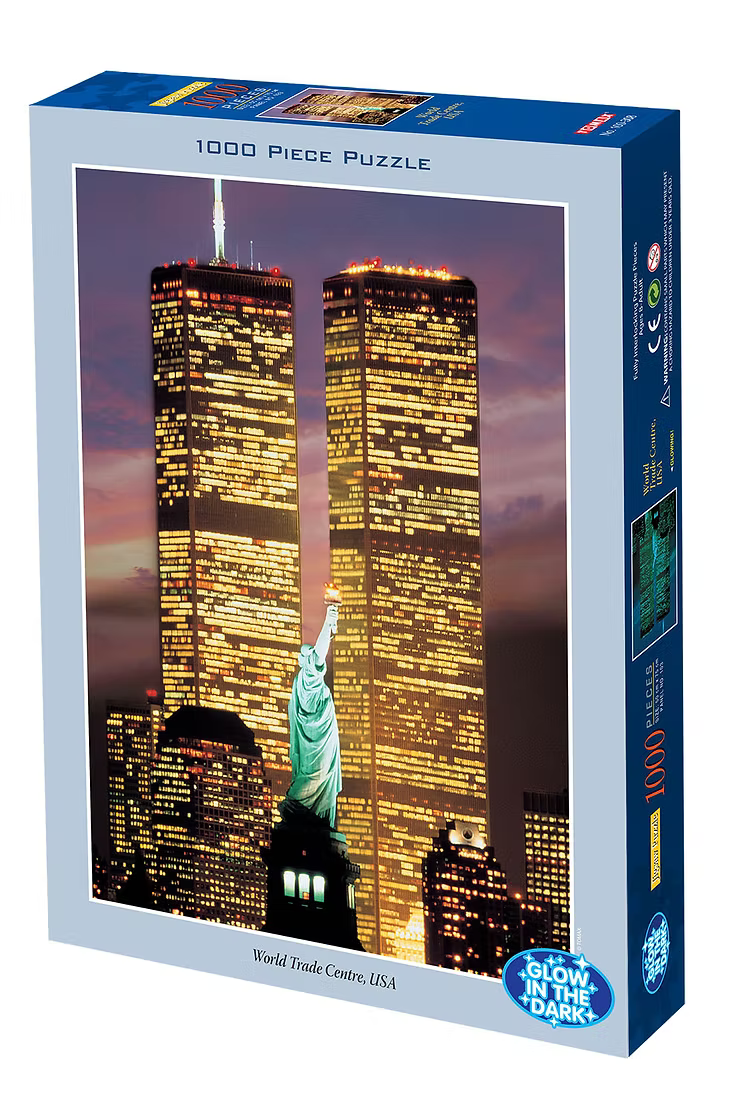 Experience the iconic skyline of New York City with this stunning 1000-piece glow-in-the-dark jigsaw puzzle featuring the World Trade Center. Perfect for puzzle enthusiasts and lovers of world landmarks, this advanced-level puzzle offers both a challenging assembly experience and a beautiful display piece that illuminates in the dark.