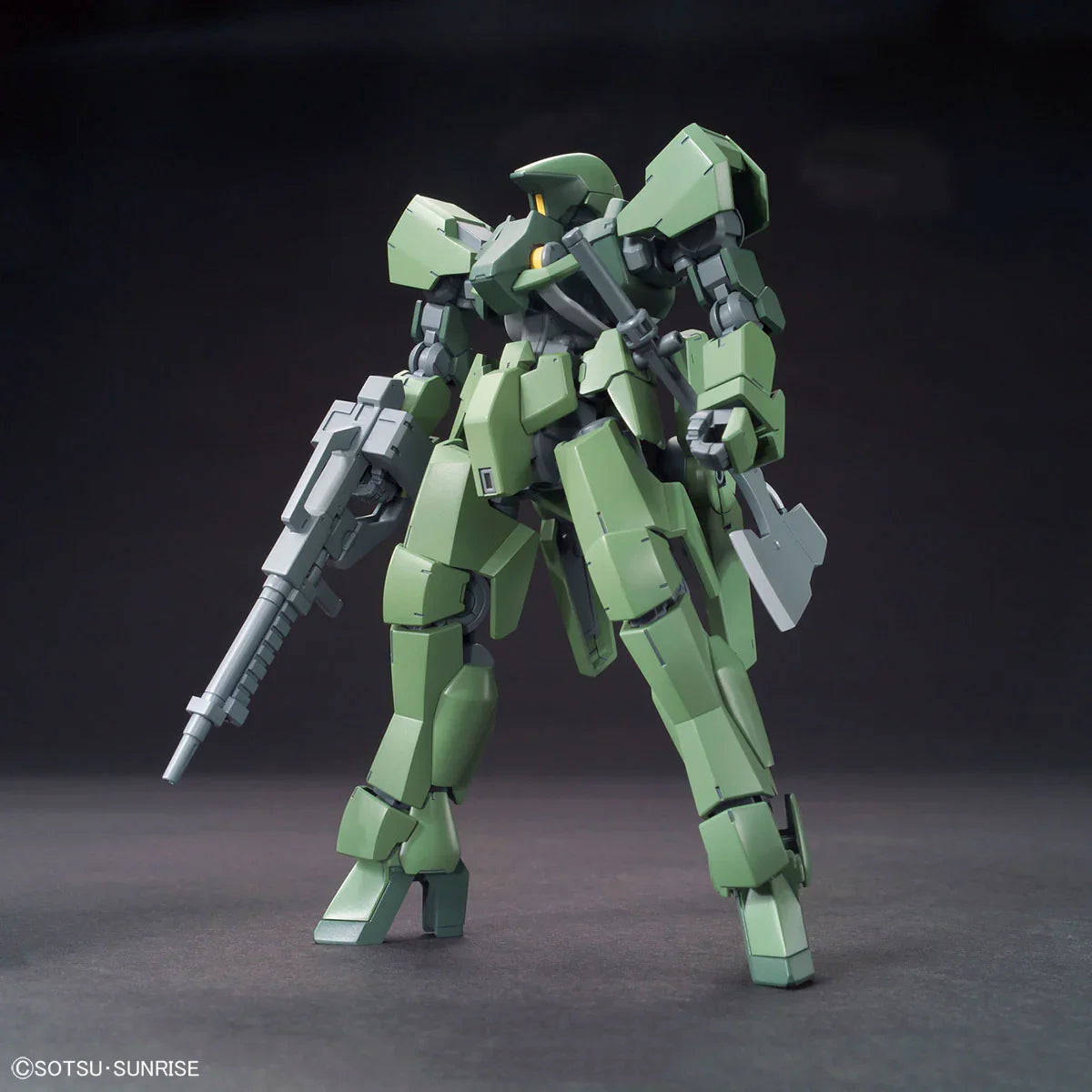 From "MOBILE SUIT GUNDAM IRON-BLOODED ORPHANS", the mass-produced MS of Gjallarhorn is now available! Two forms, a captain machine with horns and a general machine without horns, can be reproduced by replacing parts! The head is equipped with a deployment gimmick, and the internal structure with spherical parts is also reproduced! Various equipment such as a rifle and a battle axe that can be mounted on the waist are also included!