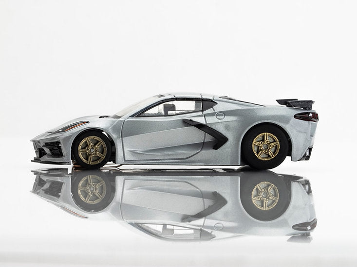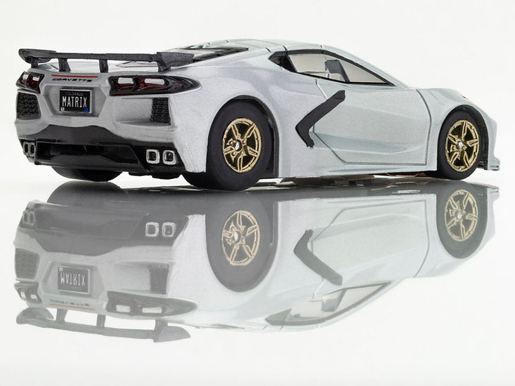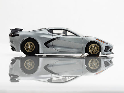 Power and velocity run the gauntlet with the Corvette C8. As mighty as it is vibrant, Ceramic Matrix Metallic silver paint brings the body’s savage shape into bright focus. Dramatic accents of black trim make for a purely fearsome design. Don’t worry, we didn’t forget the rear wing or the detailed 5-spoke gold wheels adding to its ferocity. The 8th generation Corvette comes with 670 horsepower, making it one of the most powerful production Stingrays ever.