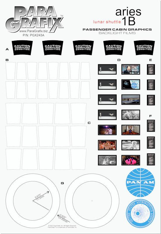 The decals include the same television screens and zero gravity toilet instructions as the lighting films for those who don’t wish to do the modifications necessary to light them. In addition, decals are included for: