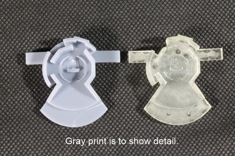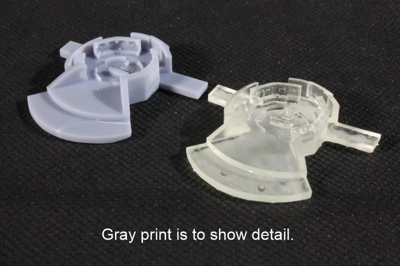 3D printed in clear resin, the bridge includes raised display screens that can be scraped clean of paint for lighting. Installation is simple – just glue to the underside of kit’s bridge dome (part 102).