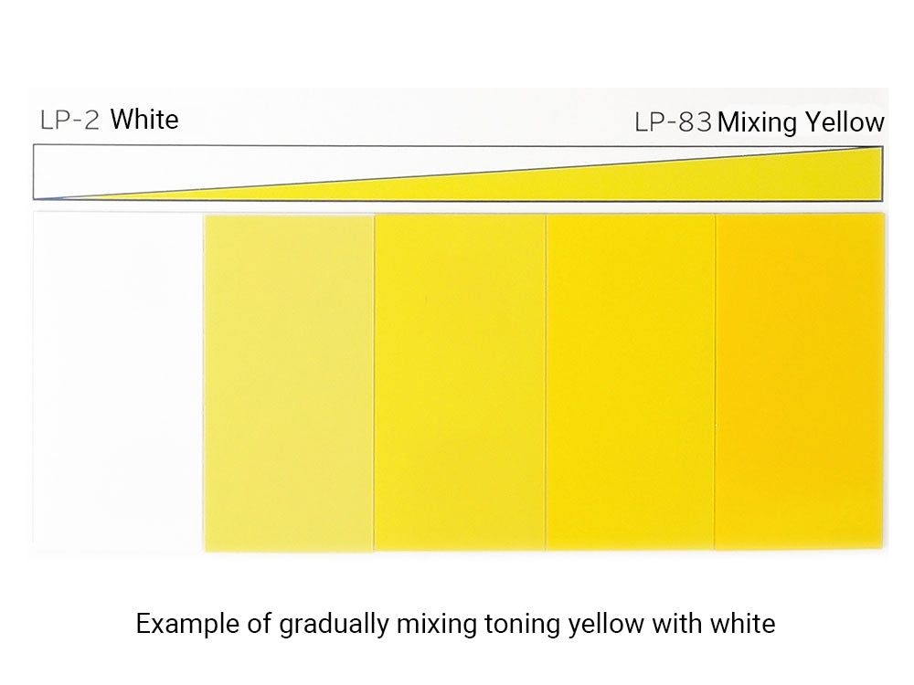 - Use this paint for mixing. This paint contains yellow pigment. Other pigments are-not-utilized to ensure purity of color. *Please note that using this mixing color by itself will result in a certain amount of transparency and may let plastic or paint colors beneath show through.