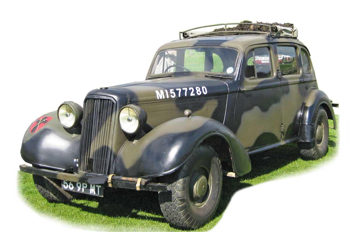 The Super Snipe was introduced in October 1938, derived by combining the four-litre inline six-cylinder engine from the larger Pullman with the chassis and body of the Humber Snipe, normally powered by a three-litre engine. The result was a car of enhanced performance and a top speed of 79 mph (127 km/h) —fast for its day (designed by American engine genius Delmar Barney Roos who left a successful career at Studebaker to join Rootes in 1936). Continued in production as a British military staff car, 4-seater, 4x2, while the same chassis was used for an armoured recon car.