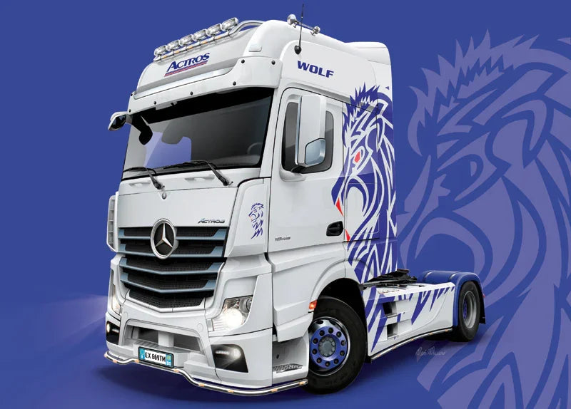 Actros is the commercial name for Mercedes-Benz heavy truck  range. The Actros range has been introduced in 1995 and quickly achieved a significant commercial success as a suitable solution to perform long-distance haulage and heavy-duties haulage. The New Actros, introduced on the market in 2012, is the most update and innovative expression of the heavy truck Mercedes family. It is characterized by an advanced and modern design and the adoption of new Euro 5 and Euro 6 engines. The vehicle configuration has been designed and developed to guarantee the highest operational efficiency minimizing the running costs. Among the several configurations available it is particularly interesting the long-haul high-roof cabin version, design to offer the highest standard of comfort on board for two drivers. The Actros is also a good starting base to create fantastic ShowTrucks with liveries and graphics characterized by a high visual impact that are real masterpieces on wheels.