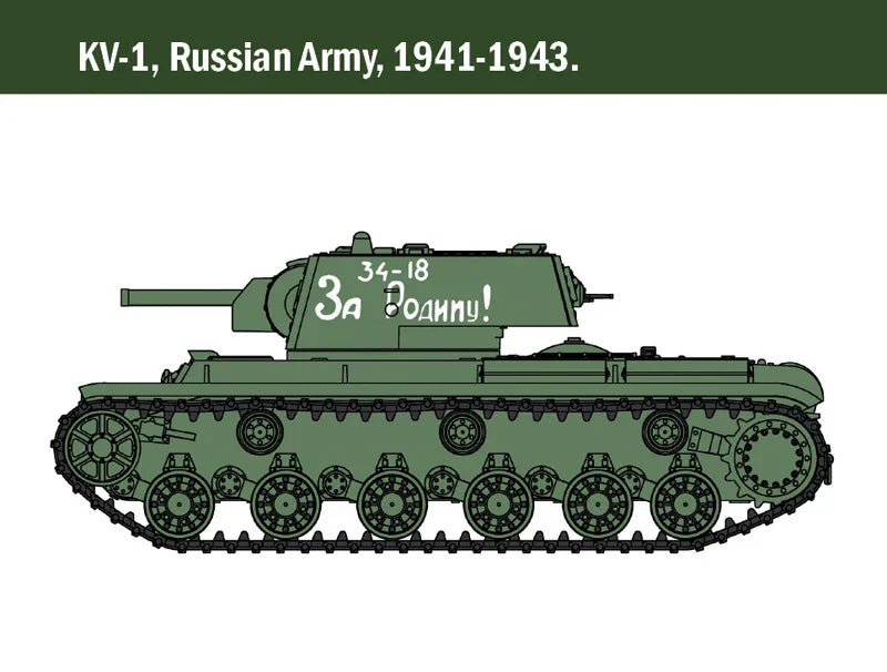 The Soviet KV-1 heavy tank was used by the Red Army during the Second World War. Its main strength was the solid armor protection that was impenetrable, except at short range, by a lot of German anti-tank guns during the first stage of Operation Barbarossa. The KV-1 was gradually modified to compete against the new generation of German tanks armed with new and powerful 75 mm and 88 mm guns. The new KV-1B and KV-1C versions adopted the new solid turret, now cast instead of welded, more protective and stronger, and the new ZIG-5 76 mm long-barrel gun. On the same KV-1 chassis , was developed the mastodontic KV-2, characterized by the 152 mm howitzer located in a big turret.