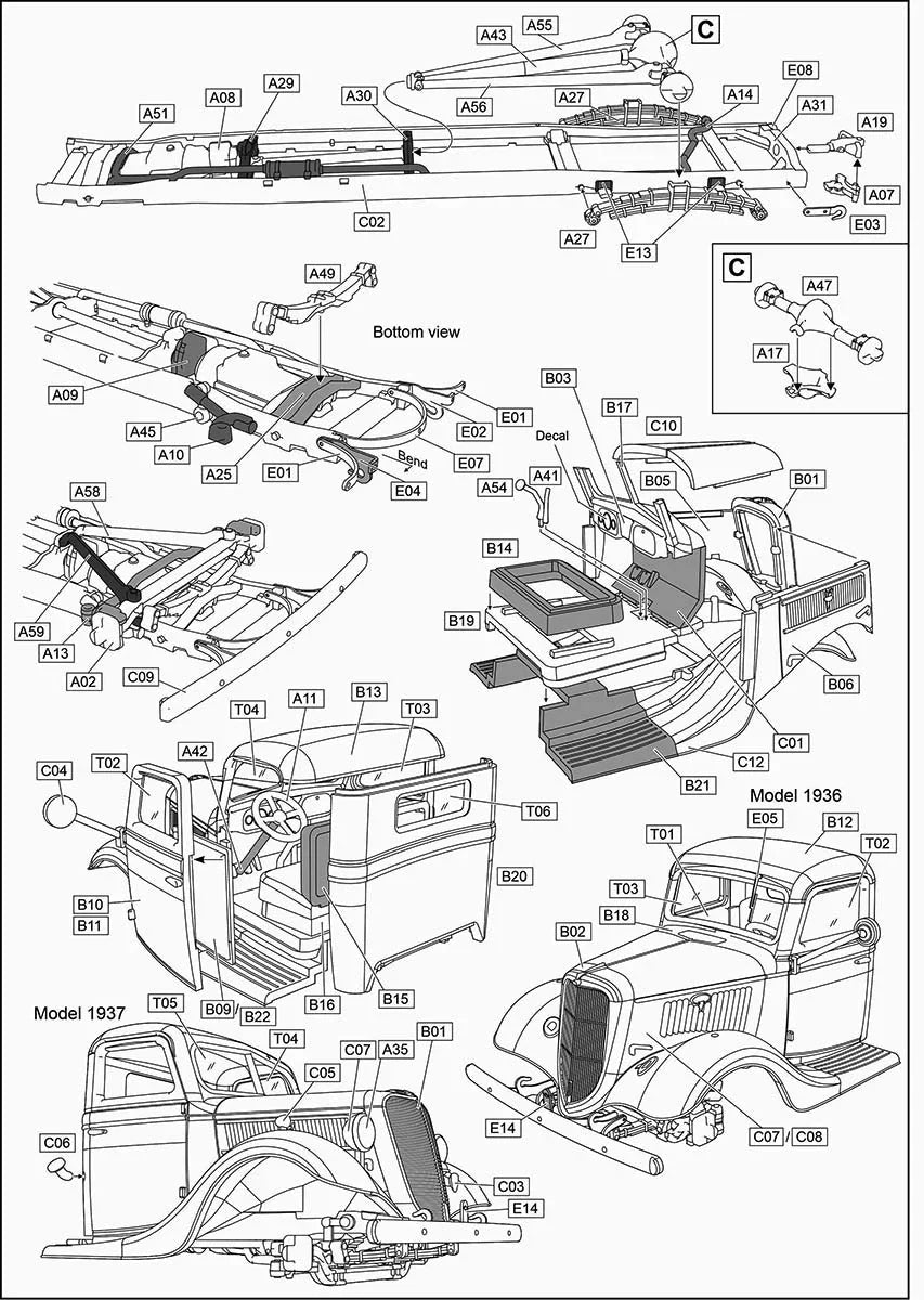 US V-8 Stake truck m.1936/37 Ford introduced its V-8 in 1932, bringing a big engine to the low-price field. The term 1932 Ford may refer to three models of automobile produced by Ford Motors between 1932 and 1934: the Model B, the Model 18, and the Model 40. These succeeded the Model A. The 18 was the first Ford fitted with the flathead V-8. The three car models were replaced by the Model 48 in 1935 which used the same chassis as its predecessor. The 1937 Ford would be the last to use the old 1932 chassis until 1940 when the car line of Ford was completely redesigned.
